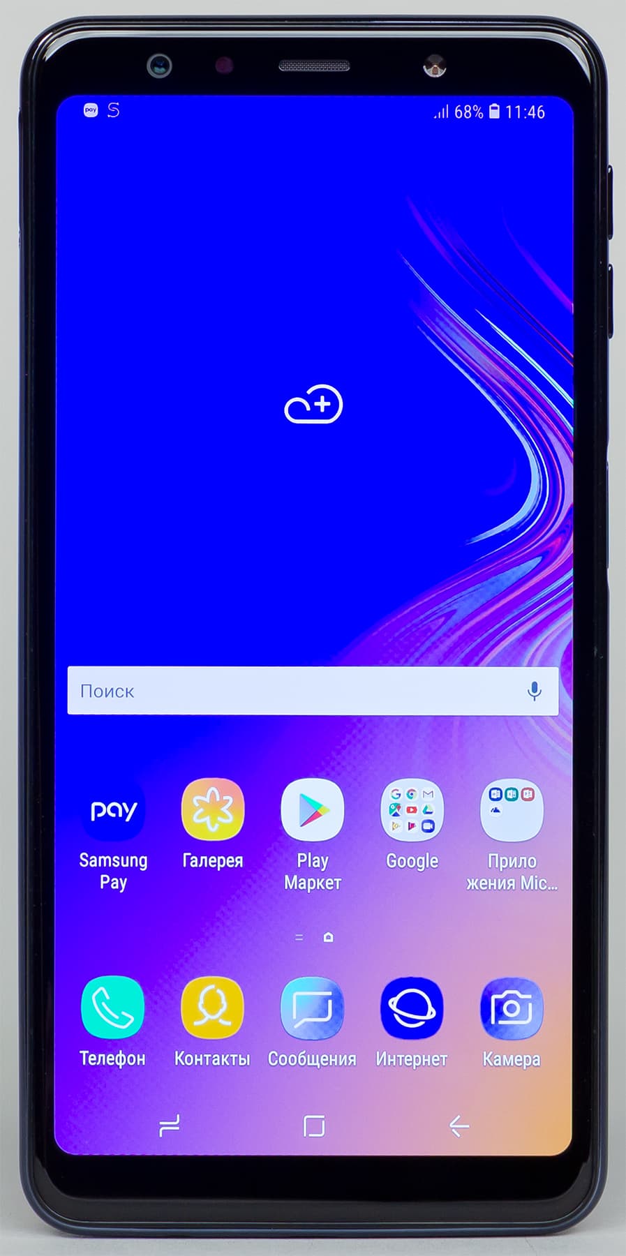 С коммуникационными возможностями у нового Galaxy A7 вообще все хорошо. Поддерживаются оба диапазона Wi-Fi 802.11 ac (2,4 и 5 ГГц), а также Bluetooth 5.0. Наличие модуля NFC с поддержкой Samsung Pay видится значимым плюсом смартфона.
