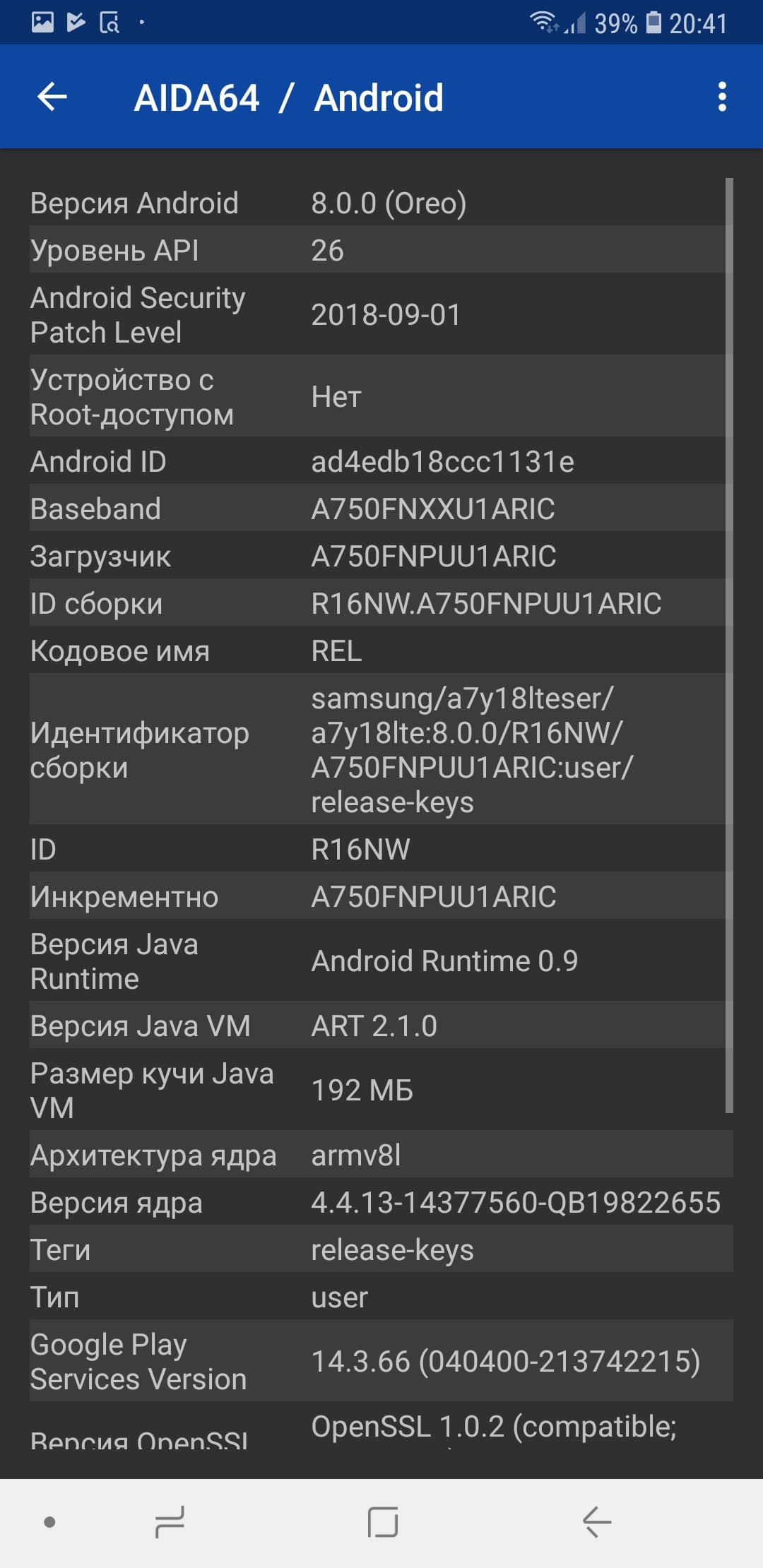 В качестве программной платформы Samsung Galaxy A7 (2018) использует ОС Android версии 8.0 с возможностью обновления по воздуху (ОТА). Поверх стандартно установлен пользовательский интерфейс Samsung Experience 9.0. Есть поддержка управления жестами, возможность клонировать приложения соцсетей, разделять экран, настраивать практически все, от экрана до стиля сообщений на панели уведомлений. Есть функция разблокировки по лицу, и работает она четко, без сбоев даже в темноте, но не так быстро, как сканер отпечатков пальцев. Предустановлены: набор офисных программ Microsoft, файловый проводник, комплексный менеджер системы для защиты и оптимизации, а также несколько собственных утилит Samsung, в том числе Samsung Health.
