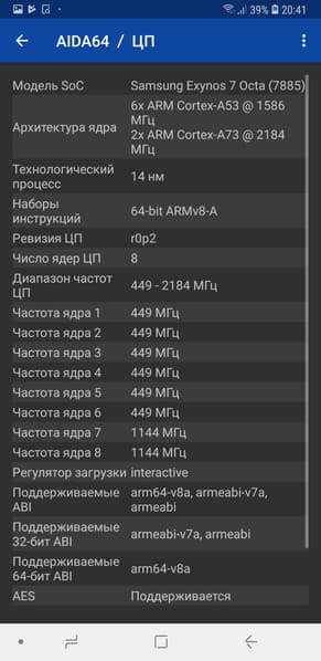 - SoC Samsung Exynos 7885, 2 ядра ARM Cortex-A73 @2,2 ГГц + 6 ядер ARM Cortex-A53 @1,6 ГГц
