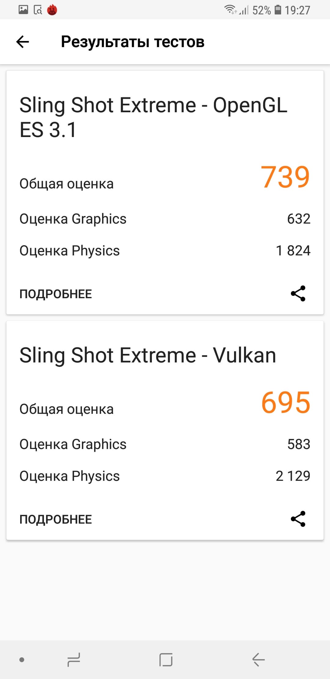 | 3DMark Ice Storm Sling Shot Ex Vulkan (больше — лучше) | 695 | 1061 | 424 | 341 | 362 |