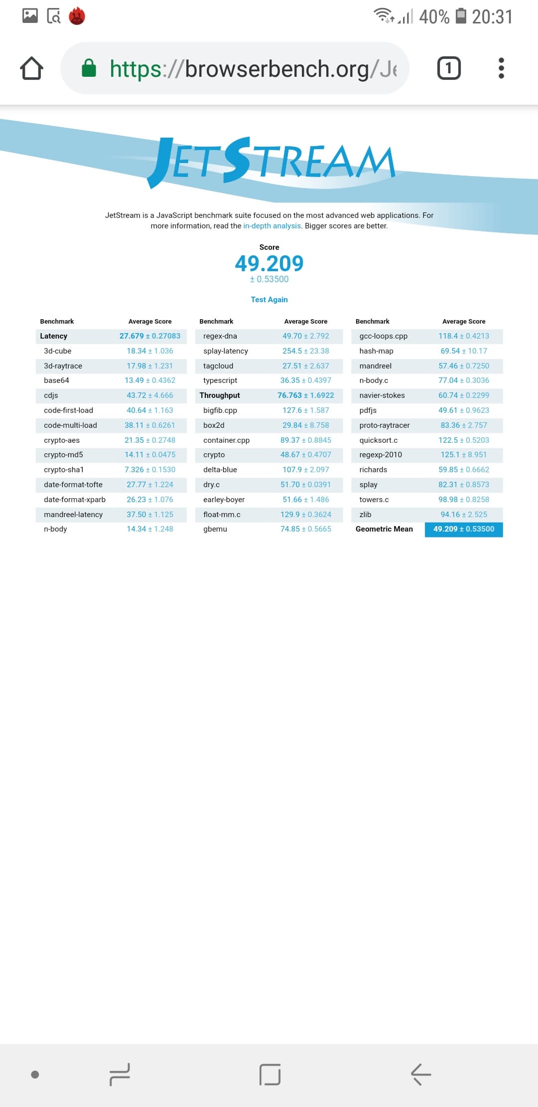 Что касается бенчмарков для оценки скорости движка javascript, то стоит всегда делать скидку на то, что в них результаты существенно зависят от браузера, в котором запускаются, так что сравнение может быть истинно корректным только на одинаковых ОС и браузерах, а такая возможность имеется при тестировании не всегда. В случае с ОС Android мы всегда стараемся использовать Google Chrome.