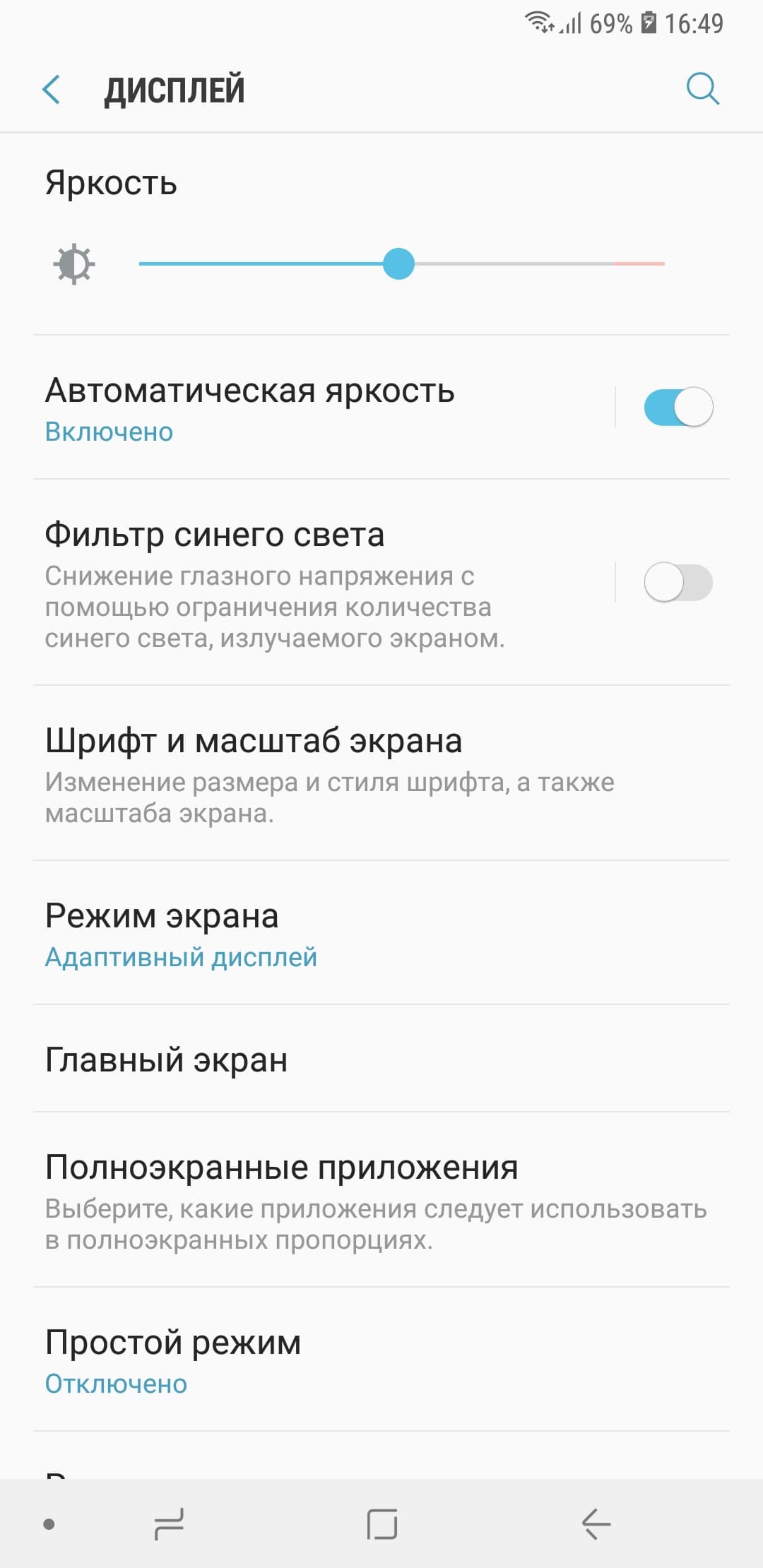Фотография выше получена после выбора профиля Основной в настройках экрана, всего их четыре: