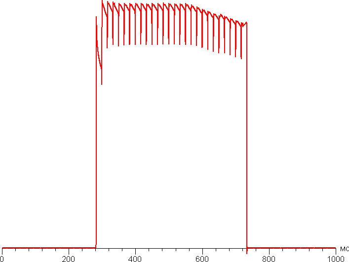Видно, что на максимальной и близкой к ней яркости амплитуда модуляции не очень большая, в итоге видимого мерцания нет. Однако при понижении яркости появляется модуляция с большой относительной амплитудой, ее наличие уже можно увидеть в тесте на присутствие стробоскопического эффекта или просто при быстром движении глаз. В зависимости от индивидуальной чувствительности такое мерцание может вызывать повышенную утомляемость.