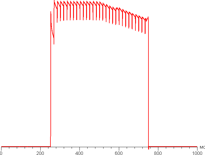 Видно, что на максимальной и близкой к ней яркости амплитуда модуляции не очень большая, в итоге видимого мерцания нет. Однако при понижении яркости появляется модуляция с большой относительной амплитудой, ее наличие уже можно увидеть в тесте на присутствие стробоскопического эффекта или просто при быстром движении глаз. В зависимости от индивидуальной чувствительности такое мерцание может вызывать повышенную утомляемость.