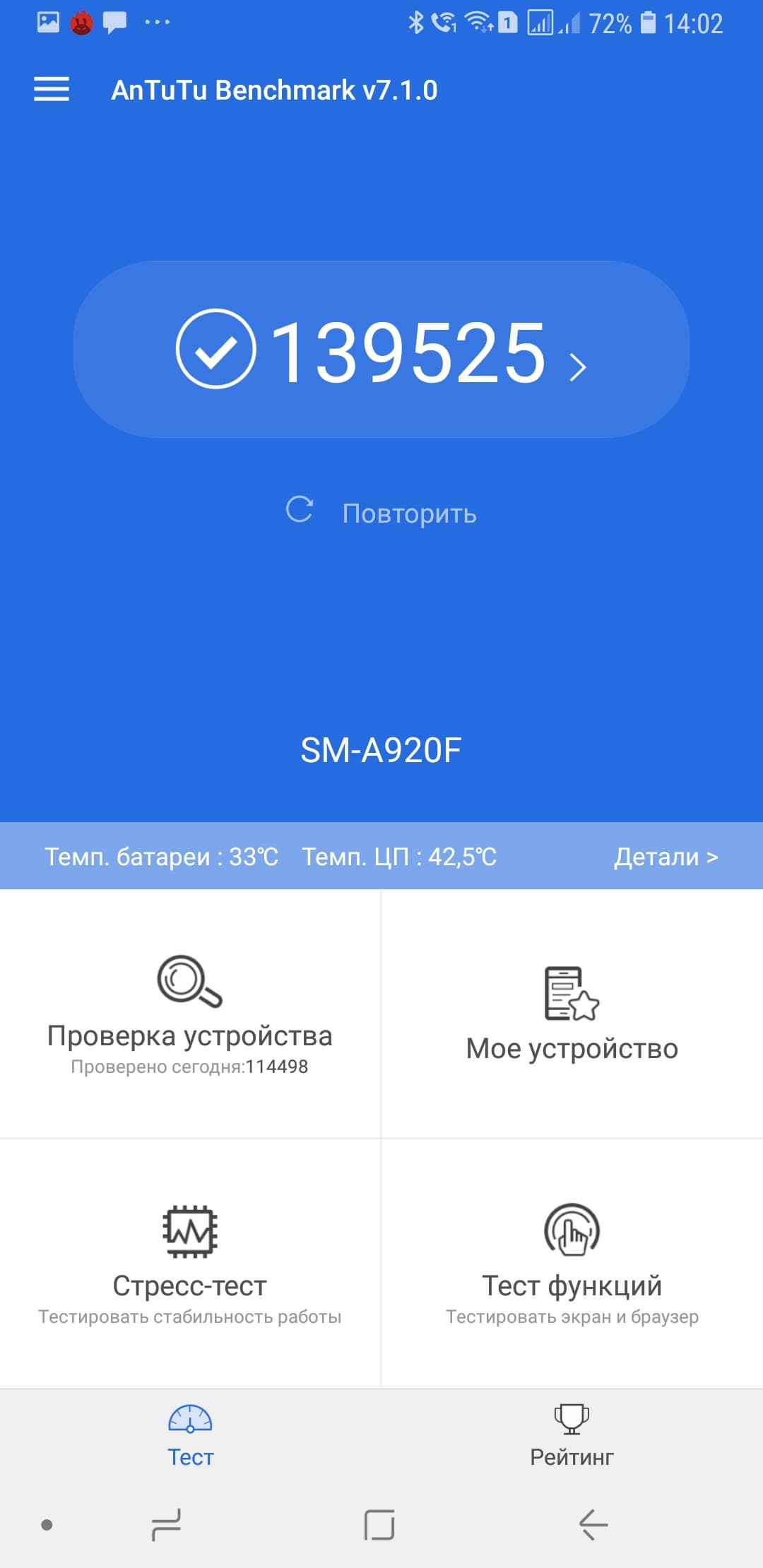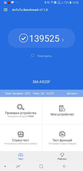 | AnTuTu (v7.x) (больше — лучше) | 139525 | 122891 | 80858 | 92315 | 87589 |