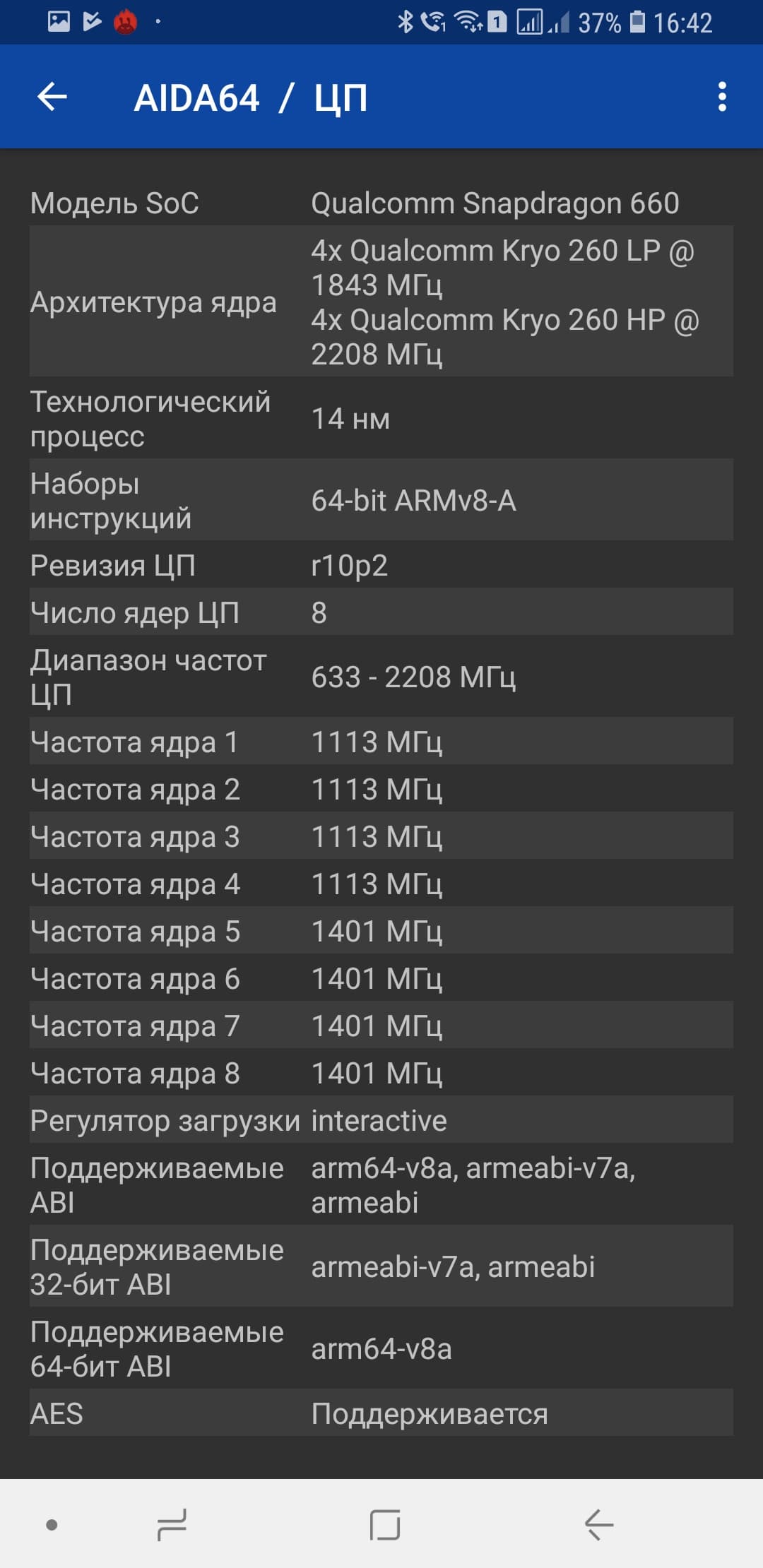 - SoC Qualcomm Snapdragon 660, 4 ядра Kryo 260 @2,2 ГГц + 4 ядра Kryo 260 @1,8 ГГц