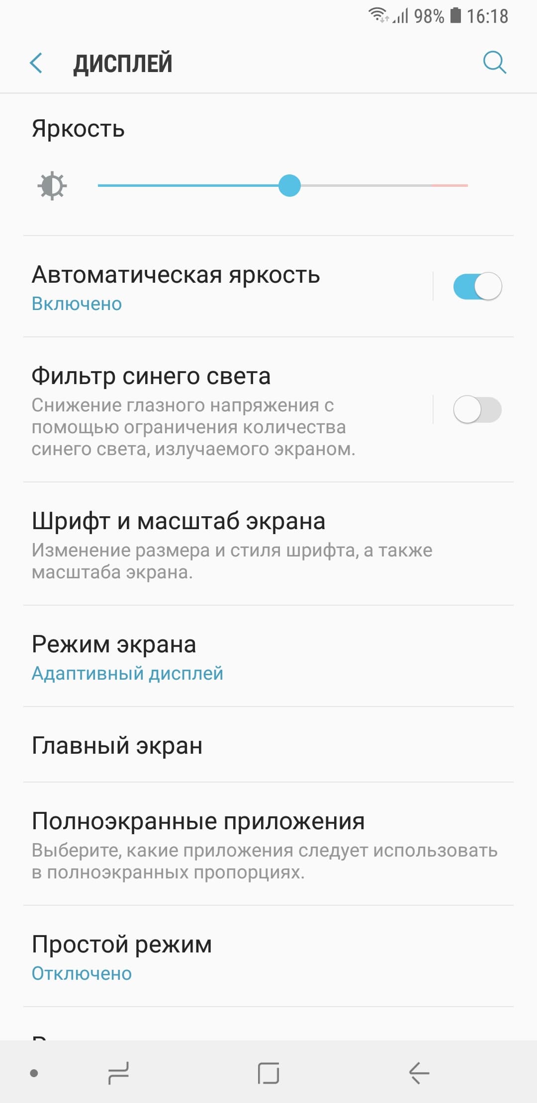 Фотография выше получена после выбора профиля Основной в настройках экрана, всего их четыре: