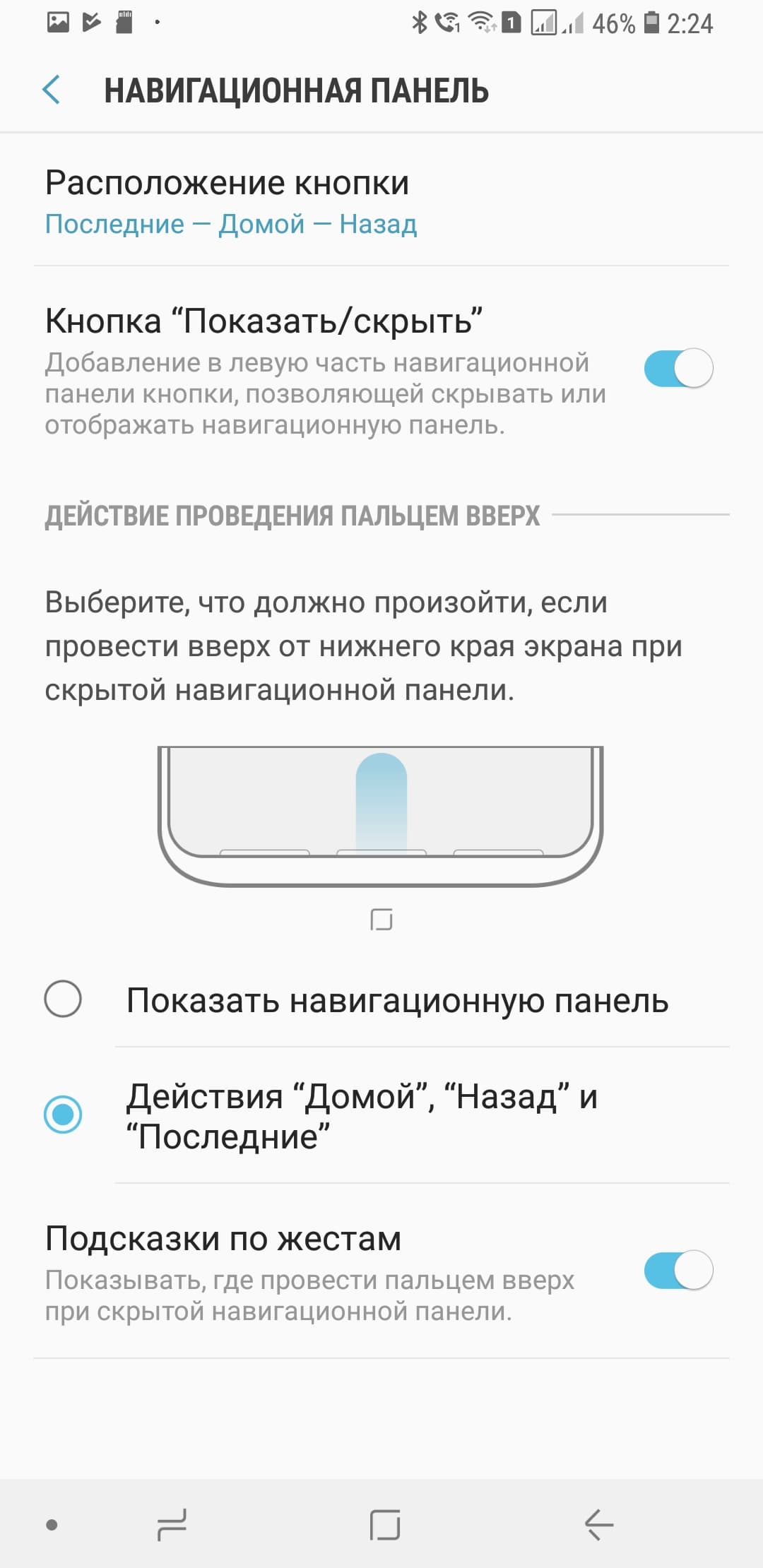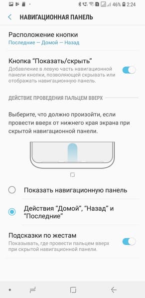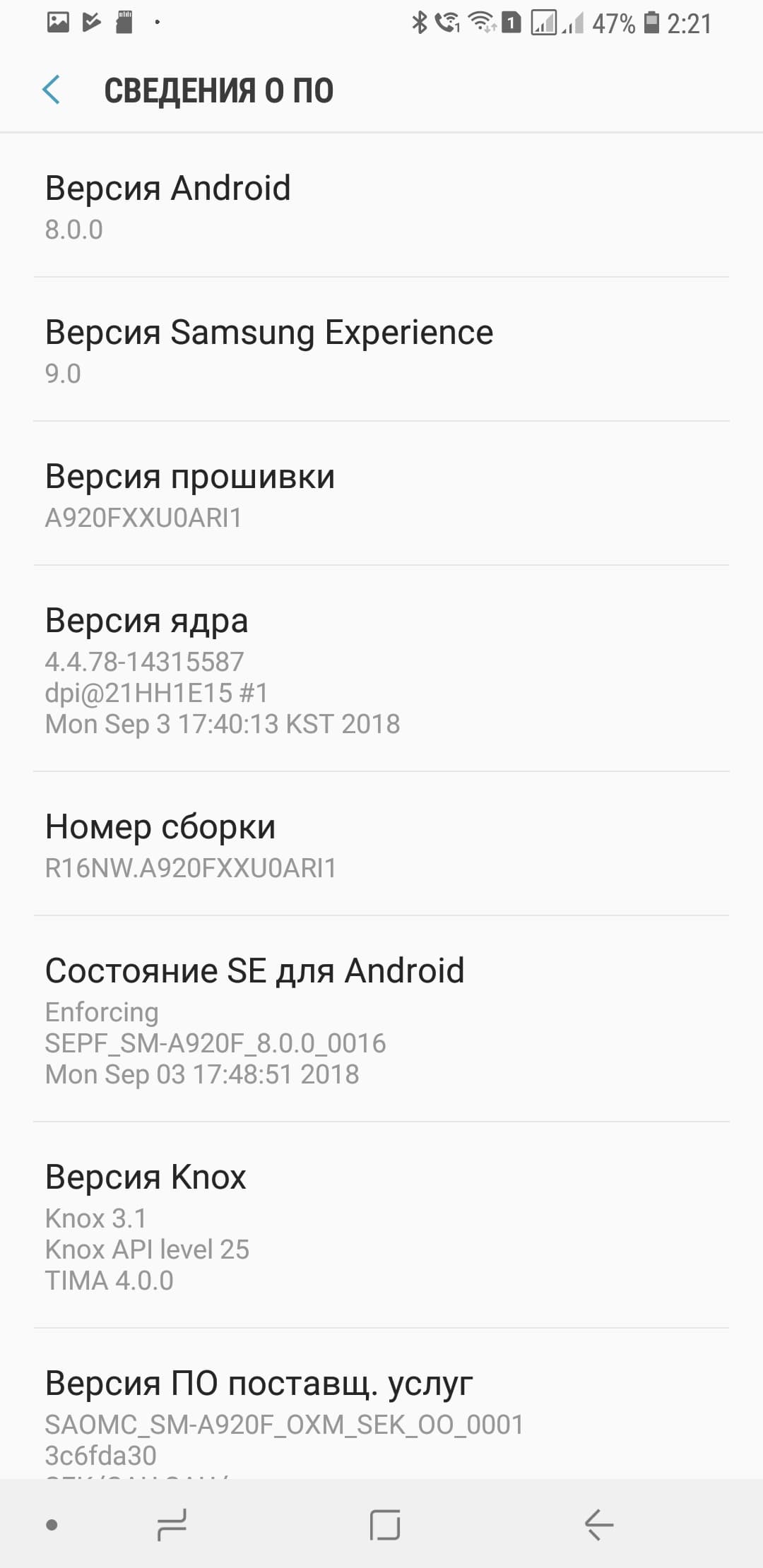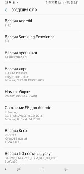 В качестве программной платформы Samsung Galaxy A9 (2018) использует ОС Android версии 8.0 с возможностью обновления по воздуху (ОТА). Установлена фирменная оболочка Experience 9.0 UX уже девятой по счету версии. Пользовательский интерфейс Samsung практически не изменен в том, что касается оформления и организации, но некоторые вещи обновились, что-то было добавлено. Например, сейчас можно скрывать привычную панель с тремя кнопками управления Android ОС и, согласно веяниям моды, полностью возлагать функцию управления на жестовые манипуляции. Вообще, интерфейс в целом органичен, как в плане насыщенности разнообразными настройками, расширяющими возможности чистой Android ОС, так и в плане отзывчивости. Ничего не притормаживает, не залипает, не заставляет тратить время на ожидание, оболочка стала вести себя гораздо бодрее, чем раньше. Все современные востребованные пользователями функции, такие как, например, режим разделенного экрана или заведение нескольких аккаунтов соцсетей, здесь на месте.