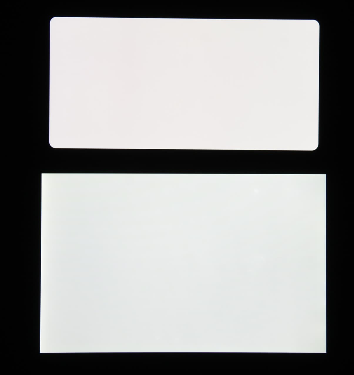 Отметим хорошую (но не идеальную) равномерность яркости и цветового тона белого поля.