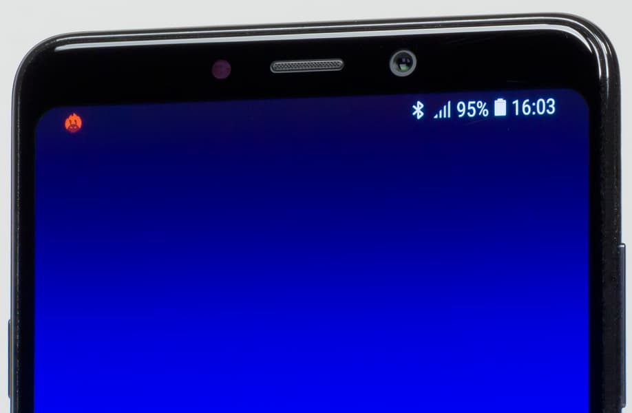 Samsung Galaxy A9 (2018) оснащен дисплеем Super AMOLED с защитным 2.5D-стеклом. Размеры экрана составляют примерно 70×143 мм при диагонали 6,3 дюйма, разрешение — 2220×1080 (соотношение сторон 18,5:9), что дает плотность точек около 392 ppi. Рамка вокруг экрана не такая уж тонкая по меркам нынешних рекордов, хотя в Samsung и этот экран по привычке обозвали «безграничным». Ширина рамки с боков составляет не менее 3,5 мм, а отступы снизу и сверху — примерно по 9-10 мм.