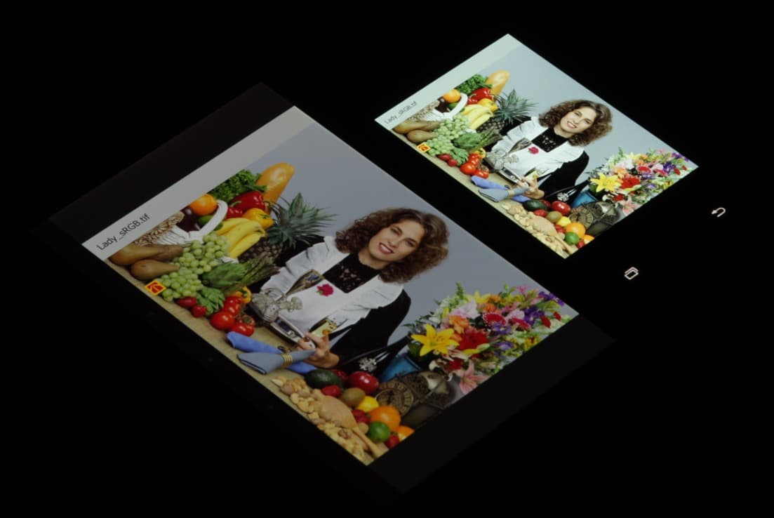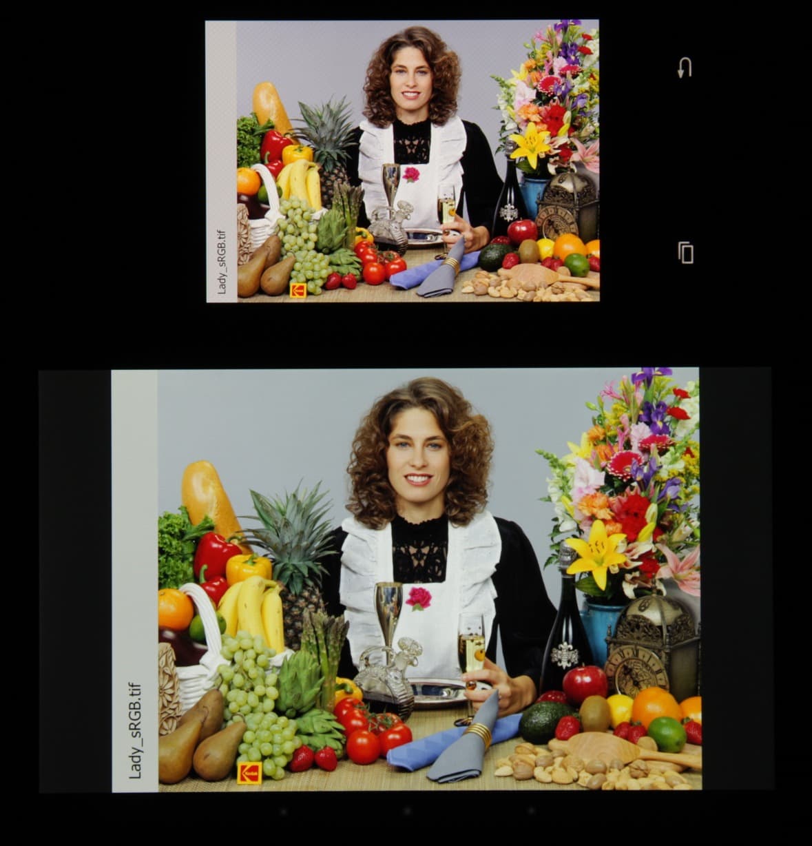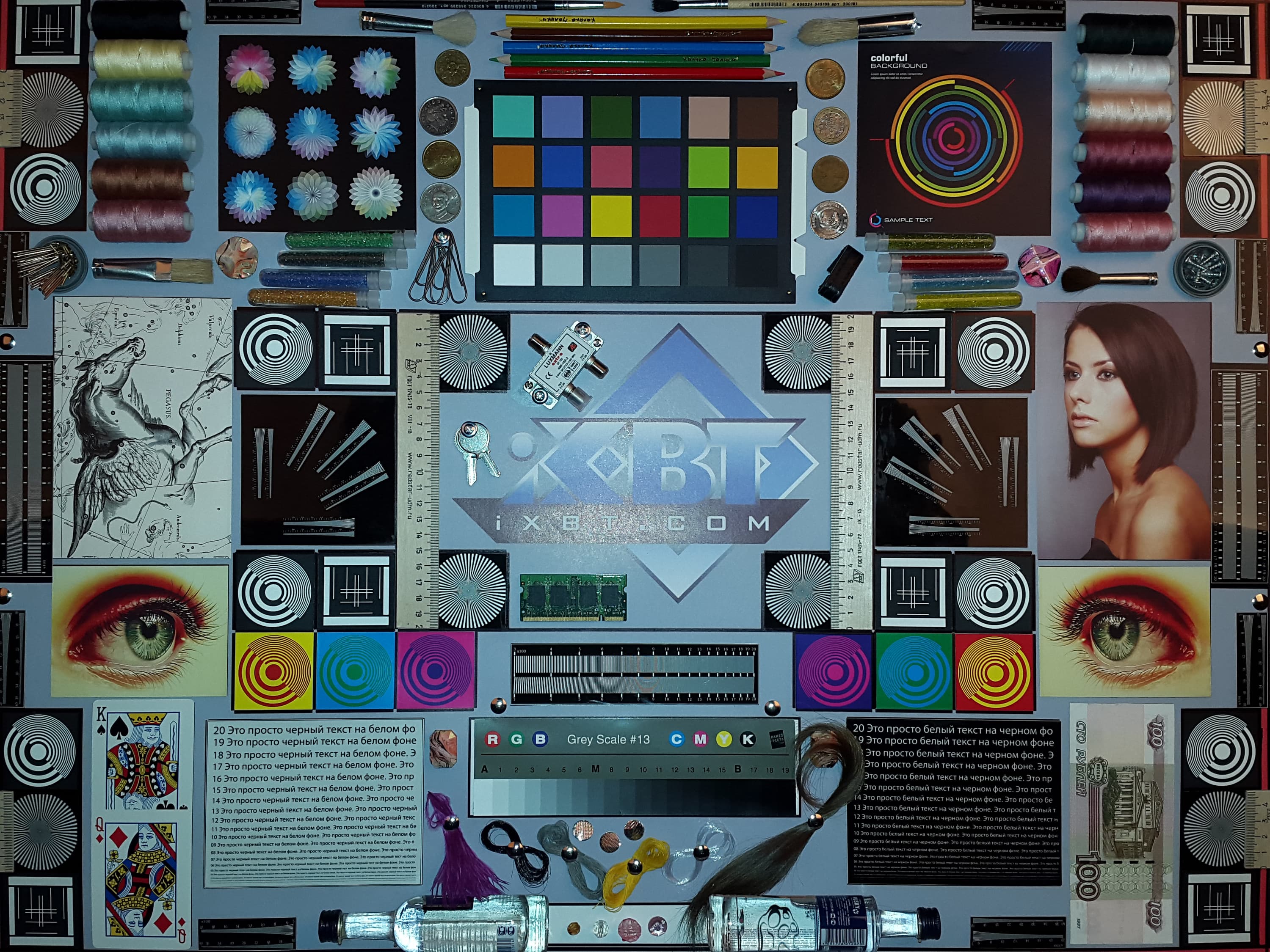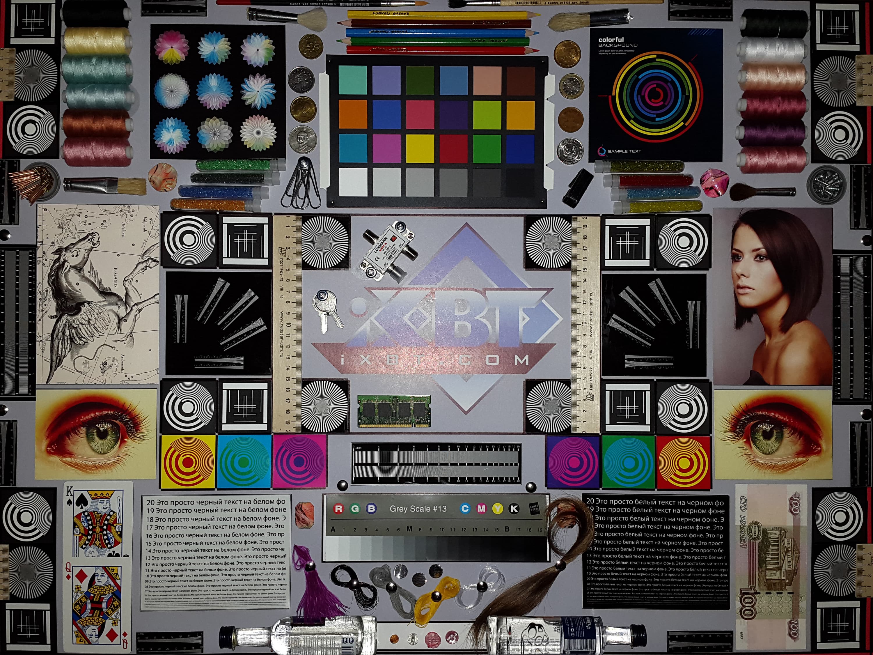 Яркость под углом у обоих экранов заметно уменьшилась (чтобы избежать сильного затемнения, выдержка увеличена в 2,5 раза в сравнении с предыдущими двумя фотографиями), но в случае Samsung падение яркости выражено гораздо меньше. В итоге при формально одинаковой яркости экран Samsung Galaxy Alpha визуально выглядит гораздо более ярким (в сравнении с ЖК-экранами), так как на экран мобильного устройства часто приходится смотреть как минимум под небольшим углом. И тестовая картинка:
