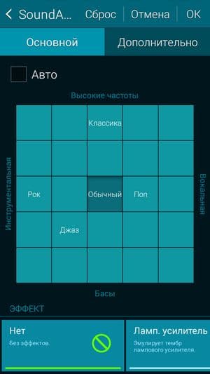 Для проигрывания мелодий стандартно используется фирменный проигрыватель с максимальным количеством настроек. Все звуковые эффекты при этом объединены технологией под названием SoundAlive — правда, часть из них доступна лишь с подключенными наушниками. Это же касается и функции оптимизации звука. Разнообразных виртуальных эффектов представлено очень много, они здесь объединены в матрицу из квадратиков, экспериментировать можно очень долго.
