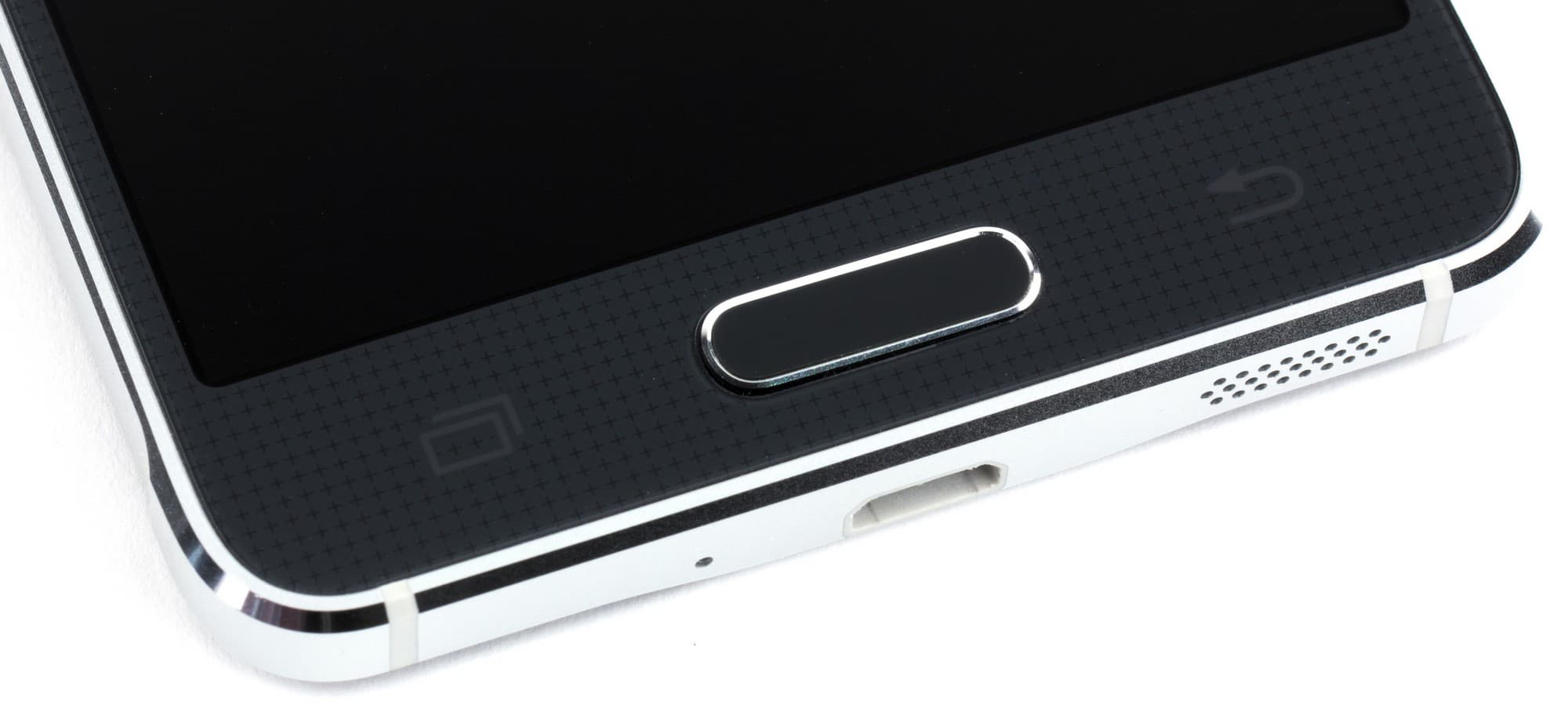 Самый узнаваемый элемент всех топовых смартфонов Samsung, продолговатая аппаратная механическая клавиша под экраном, осталась на своем месте, она получила дополнительную функциональность в виде сканера отпечатков пальцев. По сканеру необходимо проводить пальцем, простого прикладывания здесь недостаточно. Сенсорные кнопки рядом с механической имеют яркую белую подсветку с настраиваемым временем свечения, для этого в настройках в разделе «Дисплей» также имеется специальный пункт.