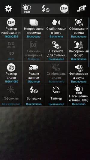 При съемке в максимальном разрешении фотографии получаются размером 4608×2592 пикселей. Меню настроек наглядно и интуитивно понятно, разбито на равнозначные ячейки, каждая из которых всегда находится на виду и интерактивна. Прорисовка иконок отчетливая, все прекрасно видно даже на самом ярком солнечном свету, и вообще реализация меню управления камерой у последних аппаратов Samsung одна из лучших на рынке.