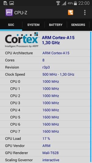 - SoC Exynos 5 Octa 5430, 8 ядер ARM big.LITTLE (4 ядра Cortex-A15 @1,8 ГГц + 4 ядра Cortex-A7 @1,3 ГГц)