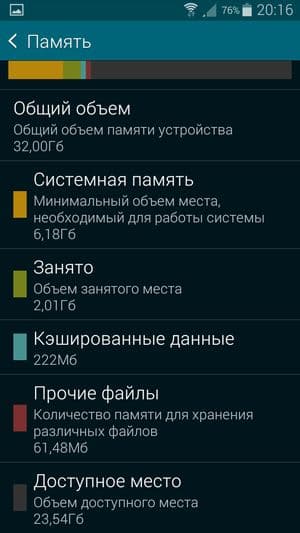 Объем оперативной памяти смартфона составляет 2 ГБ, встроенной флэш-памяти предусмотено 32 ГБ, из которых около 25 ГБ отведено на нужды пользователя. Расширения памяти с помощью карт microSD здесь не предусмотрено. Поддерживается подключение внешних флэш-накопителей к порту Micro-USB при помощи специального OTG-переходника.