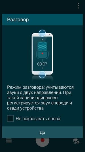 FM-радио в штатной комплектации смартфона традиционно отсутствует, а диктофон имеется, и его функциональность разработчики улучшили. У смартфона не три микрофона, как у Galaxy Note 4, а только два, поэтому они задействованы лишь в новом режиме под названием «Разговор», при котором запись идет одновременно с двух источников звука на два микрофона, а вот режима «Собрание» с возможностью различать до 8 источников звука, здесь нет.