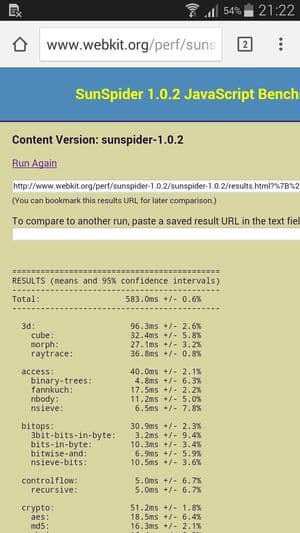 Что касается бенчмарков для оценки скорости движка javascript, то стоит всегда делать скидку на то, что в них результаты существенно зависят от браузера, в котором запускаются, так что сравнение может быть истинно корректным только на одинаковых ОС и браузерах, а такая возможность имеется при тестировании не всегда. В случае с ОС Android мы всегда стараемся использовать Google Chrome.