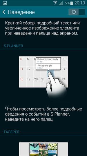 В режиме многозадачности поддерживается работа с двумя окнами. Имеется поддержка работы с жестами, как контактными, так и безконтактными. Естественно, присутствует и продемонстрированный ранее на примере Galaxy S5 режим экстремального энергосбережения, когда все краски становятся оттенками серого, а количество допущенных к работе приложений ограничивается самыми основными. Приватный режим обеспечивает сохранность персональной информации, одним движением пальца можно скрыть личный контент от чужих глаз, после чего он станет доступен лишь по паролю.