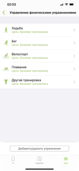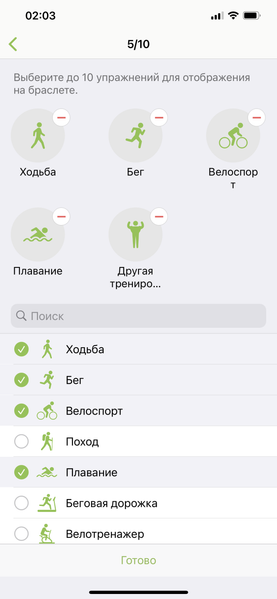 Прежде всего, тренировки: по умолчанию их в Samsung Galaxy Fit2 всего пять. Но с помощью приложения вы можете расширить это количество до десяти и изменить сам набор. Вариантов достаточно.