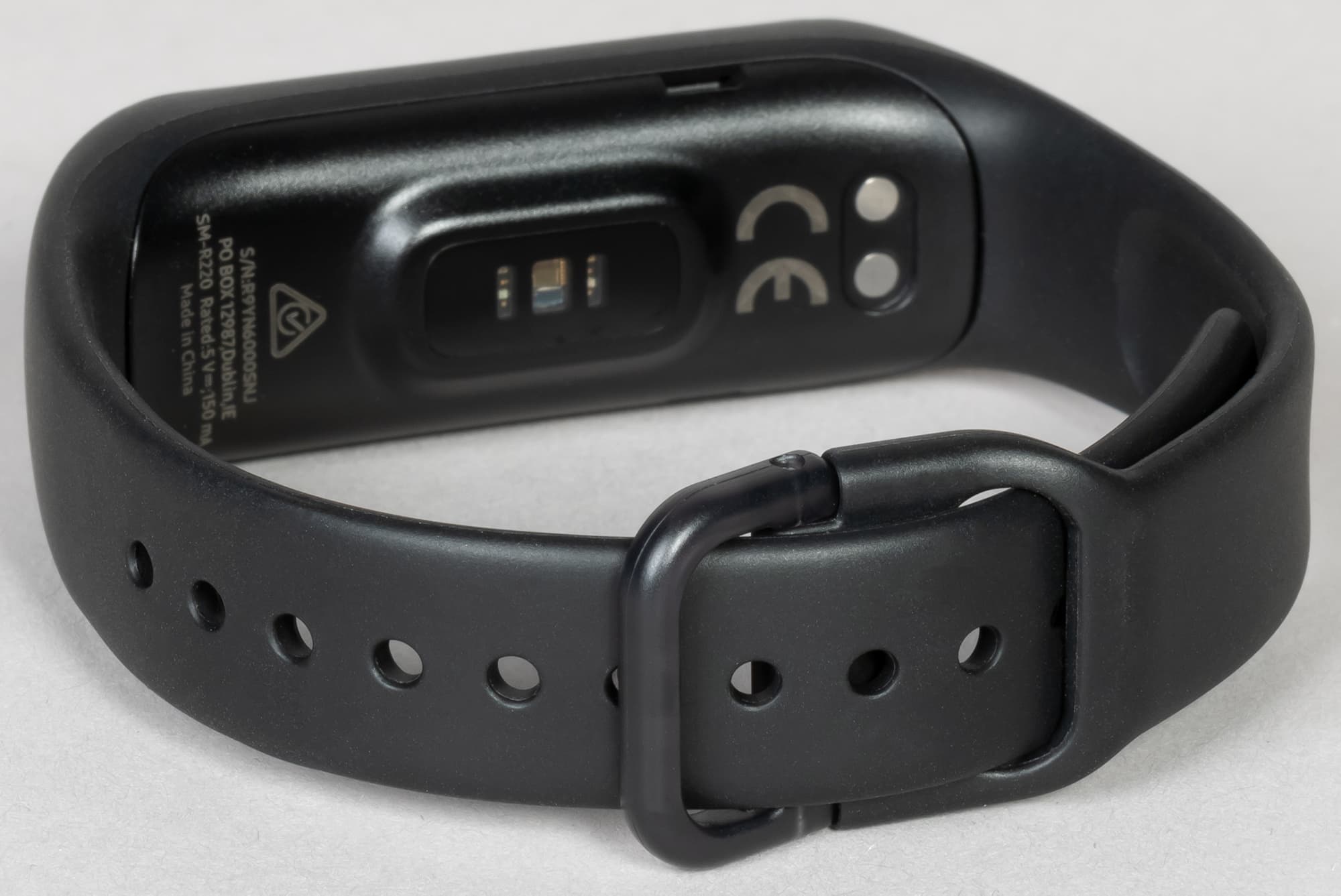 Все управление устройством осуществляется с помощью сенсорного экрана и сенсорной же зоны под ним. Что касается ремешка и крепления, здесь все как у Galaxy Fit e — в этом плане новинка ближе даже не к непосредственному предшественнику, а к младшему товарищу.