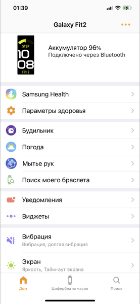 Сопряжение со смартфоном (мы использовали iPhone 12 Pro Max) проходит без проблем. Однако, целесообразность такого разделения на два приложения представляется сомнительной: фактически, первое из них — Samsung Galaxy Fit — представляет собой лишь набор настроек, которые вряд ли будут нужны вам в повседневном использовании.