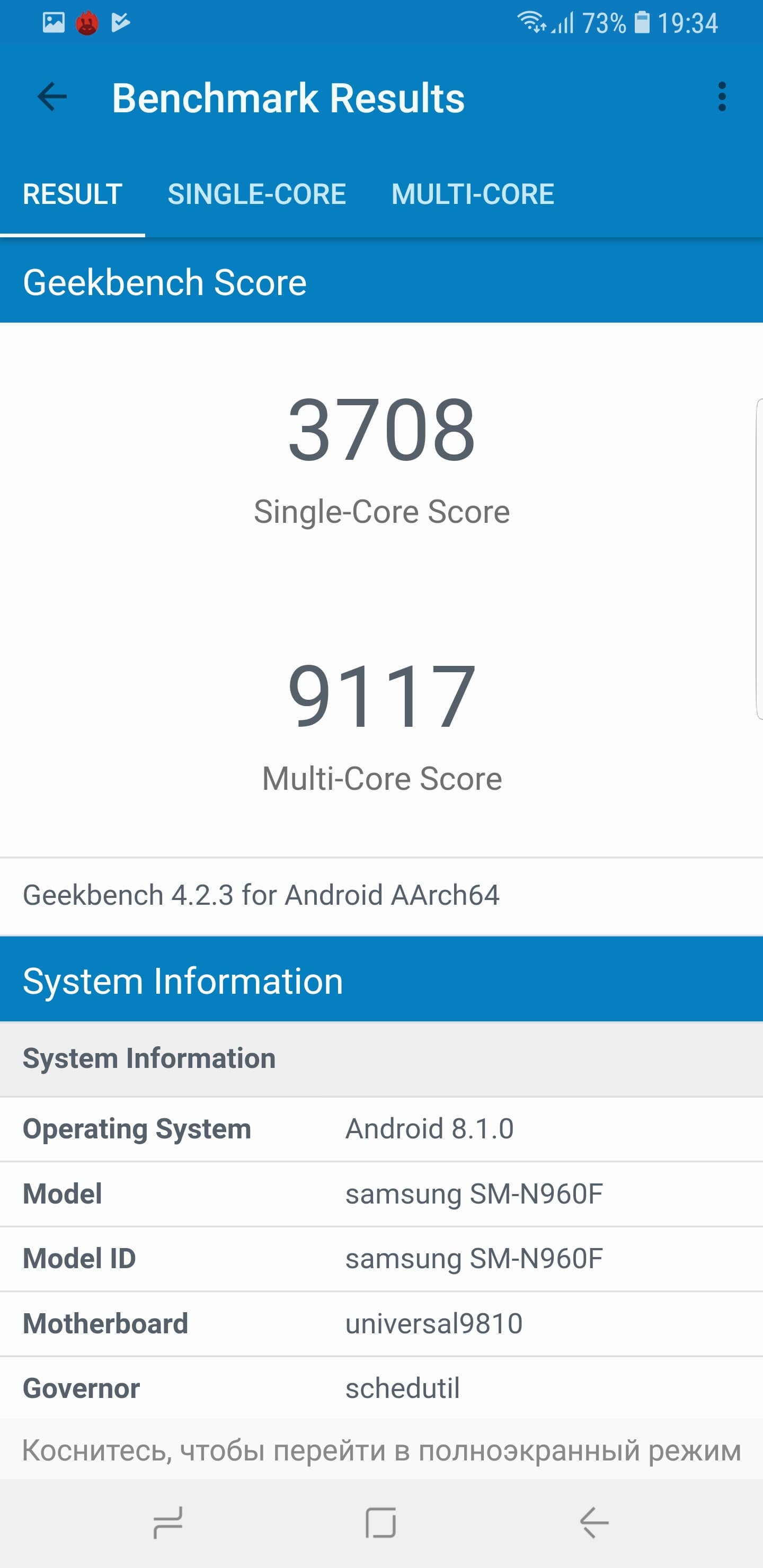 - SoC Samsung Exynos 9810, 8 ядер (4×Exynos M3 @2,7 ГГц + 4×Cortex-A55 @1,8 ГГц)