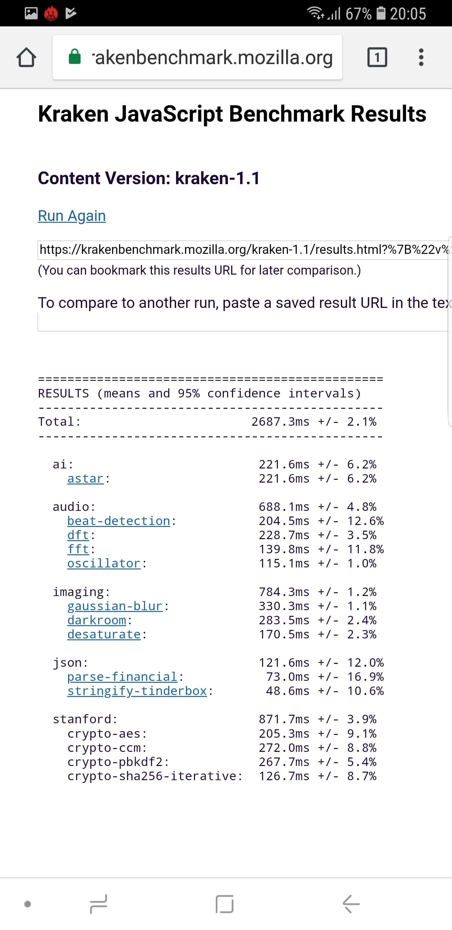 Что касается бенчмарков для оценки скорости движка javascript, то стоит всегда делать скидку на то, что в них результаты существенно зависят от браузера, в котором запускаются, так что сравнение может быть истинно корректным только на одинаковых ОС и браузерах, а такая возможность имеется при тестировании не всегда. В случае с ОС Android мы всегда стараемся использовать Google Chrome.