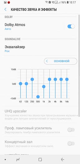 Для проигрывания музыки используется собственный проигрыватель, есть поддержка Dolby Atmos с массой настроек, десятиполосным эквалайзером. Звук качественный, громкий, чистый, и любой пользователь может подстроить его под себя с помощью службы Adapt Sound. Динамики работают в стереопаре, они громкие и выдают чистый, яркий и вполне качественный звук. В комплекте со смартфоном идут фирменные качественные наушники AKG.