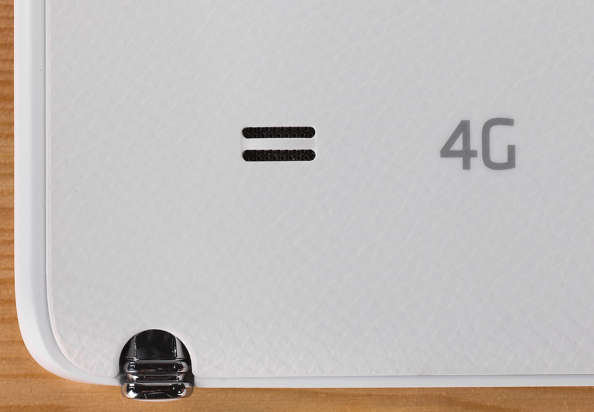 На задней поверхности обращают на себя внимание еще две детали. Это очень большой глазок камеры с внушительной вспышкой под ним (рядом с ней — сканер отпечатков пальцев), а также отверстие динамика в нижней части и надпись 4G рядом с ним. Зачем писать «4G» на аппарате за 50 тысяч, когда эту технологию поддерживают и смартфоны за 15 тысяч, не совсем понятно. Видимо, просто надо было какую-то надпись там разместить из соображений эстетики внешнего вида. Ну ОК.