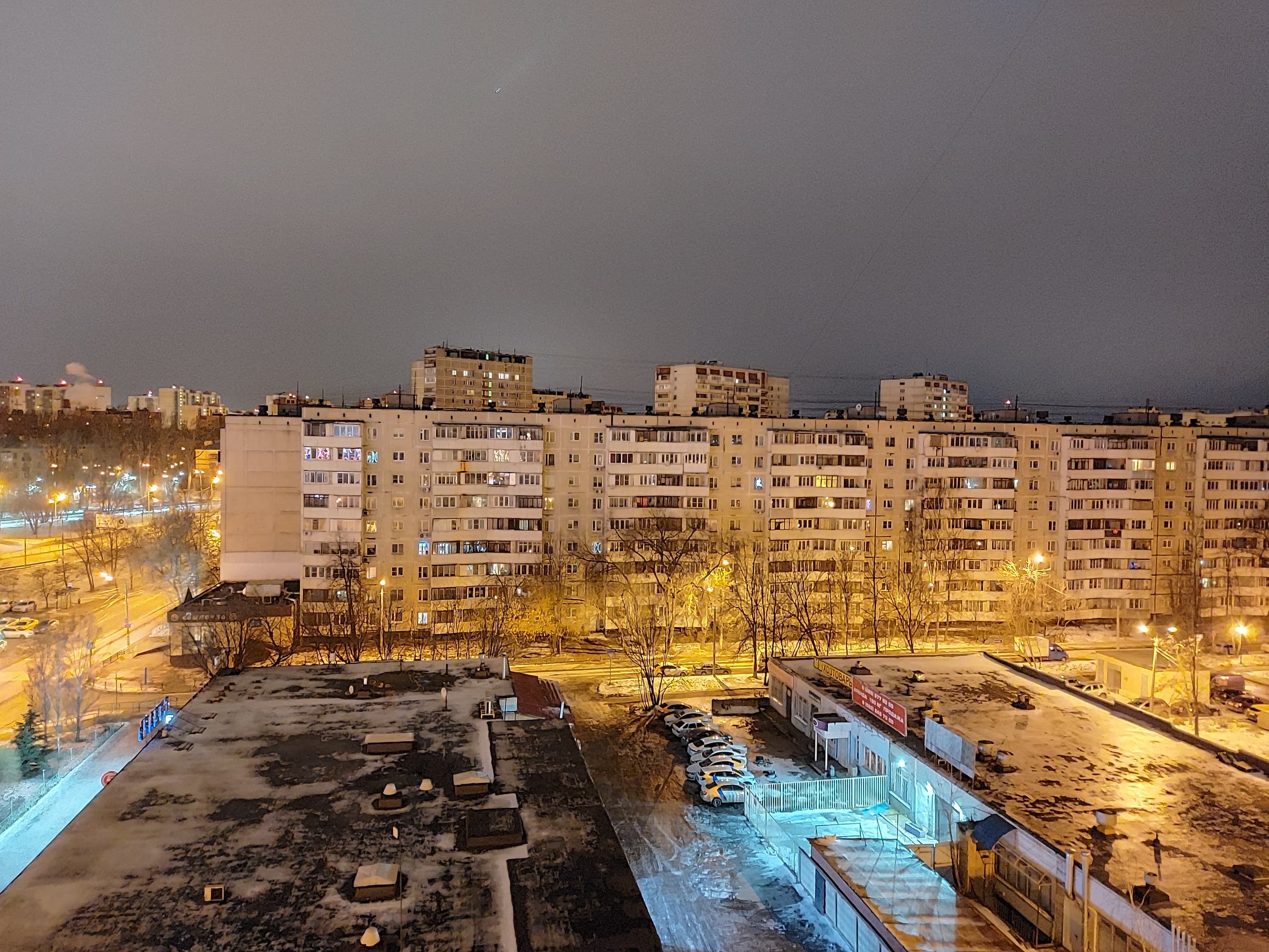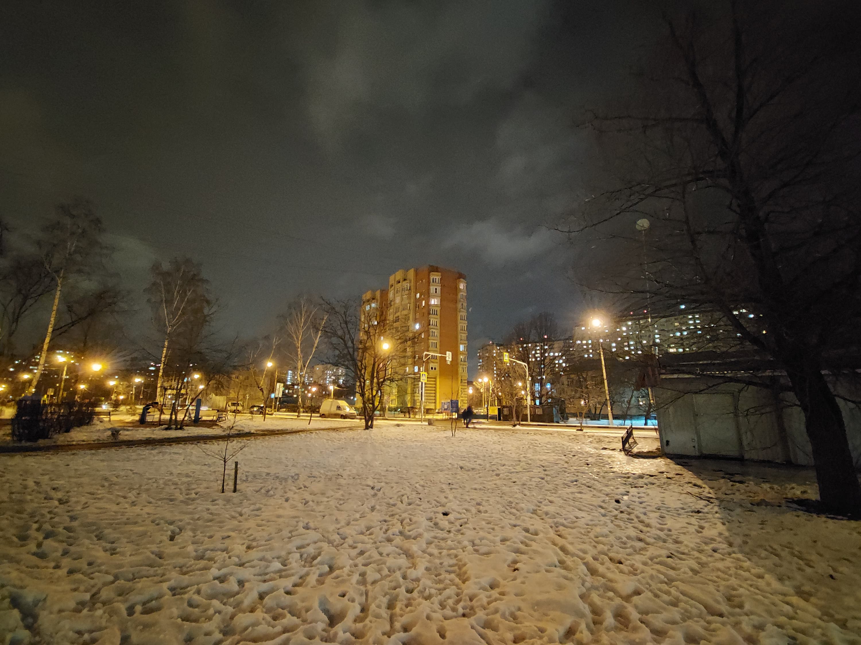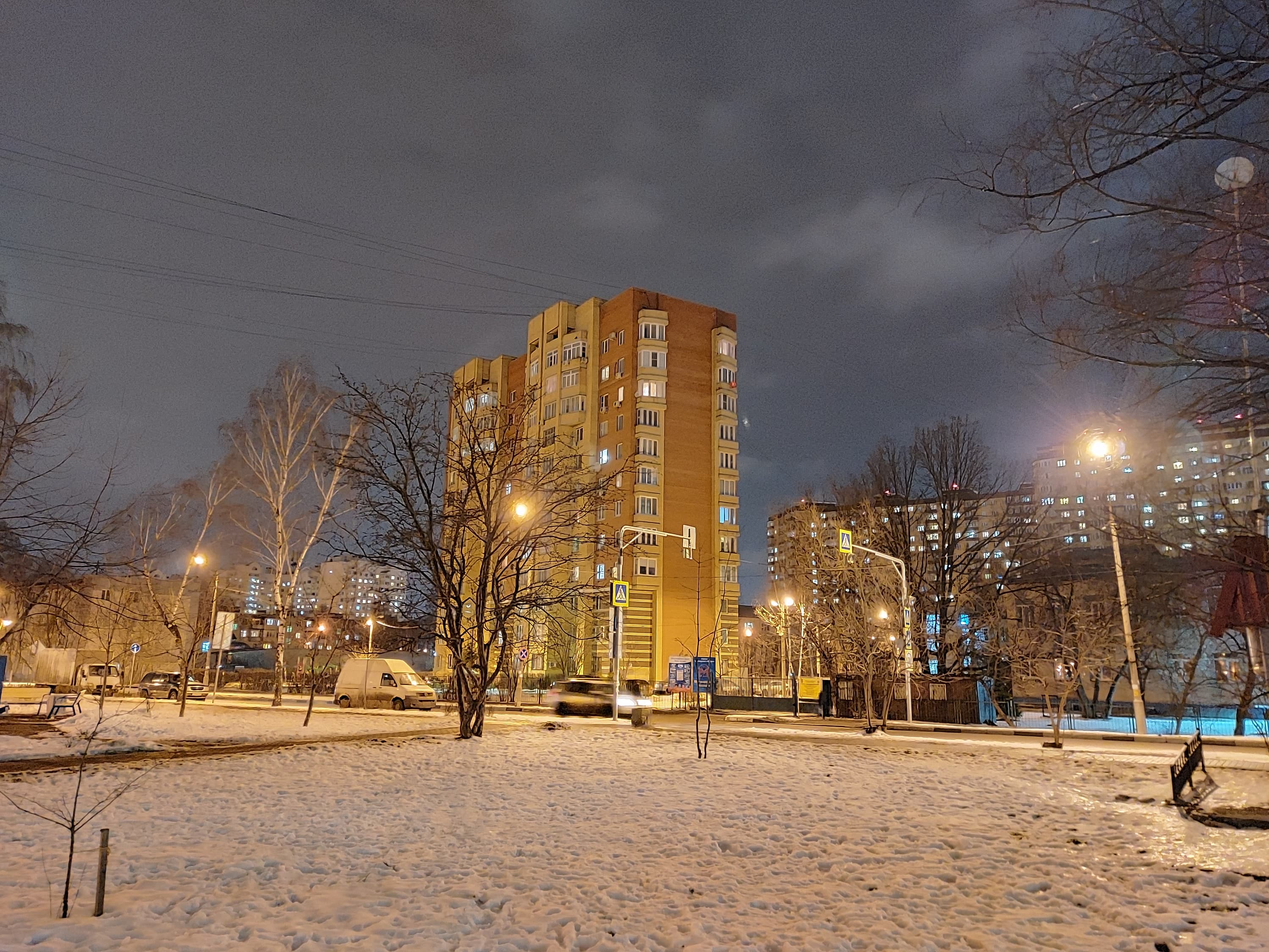 Прямо в режиме «Ночь» можно переключаться между основным и широкоугольным объективами, что удобно. Впрочем, широкоугольный модуль и так-то, вполне традиционно, не может похвастать высоким качеством снимков, а уж в условиях ограниченного освещения все совсем грустно. Зато есть функция коррекции широкоугольных искажений.