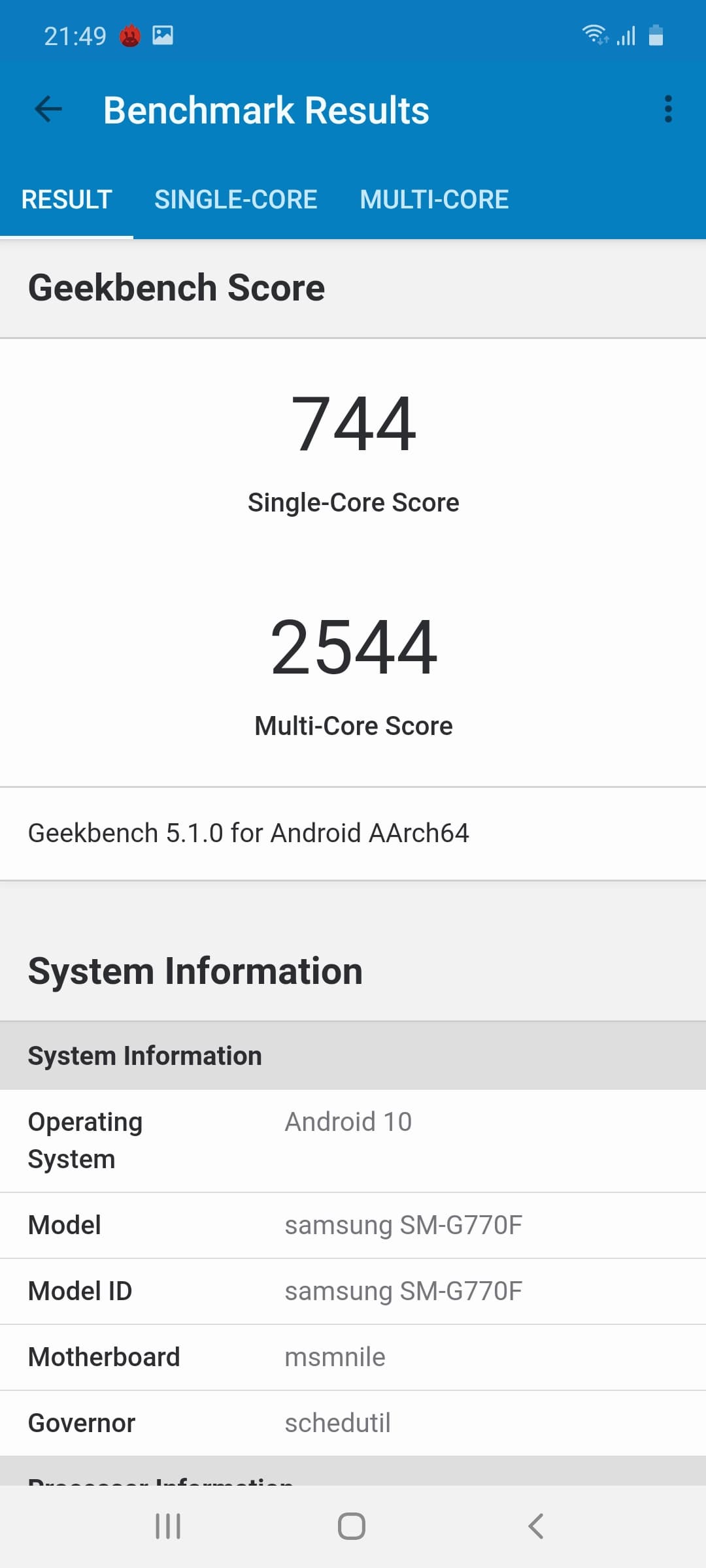 - SoC Qualcomm Snapdragon 855, 8 ядер (1×Kryo 485 Gold @2,84 ГГц + 3×Kryo 485 Gold @2,42 ГГц + 4×Kryo 485 Silver @1,78 ГГц)