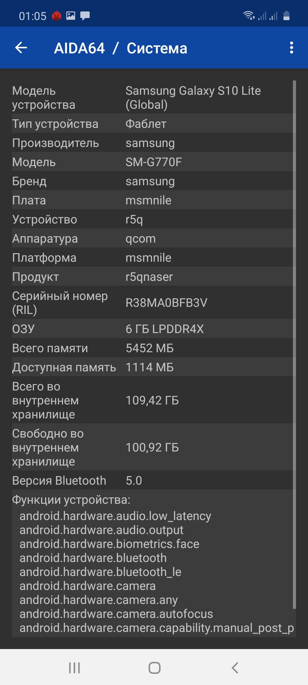 Основные характеристики Samsung Galaxy S10 Lite (модель SM-G770F)
