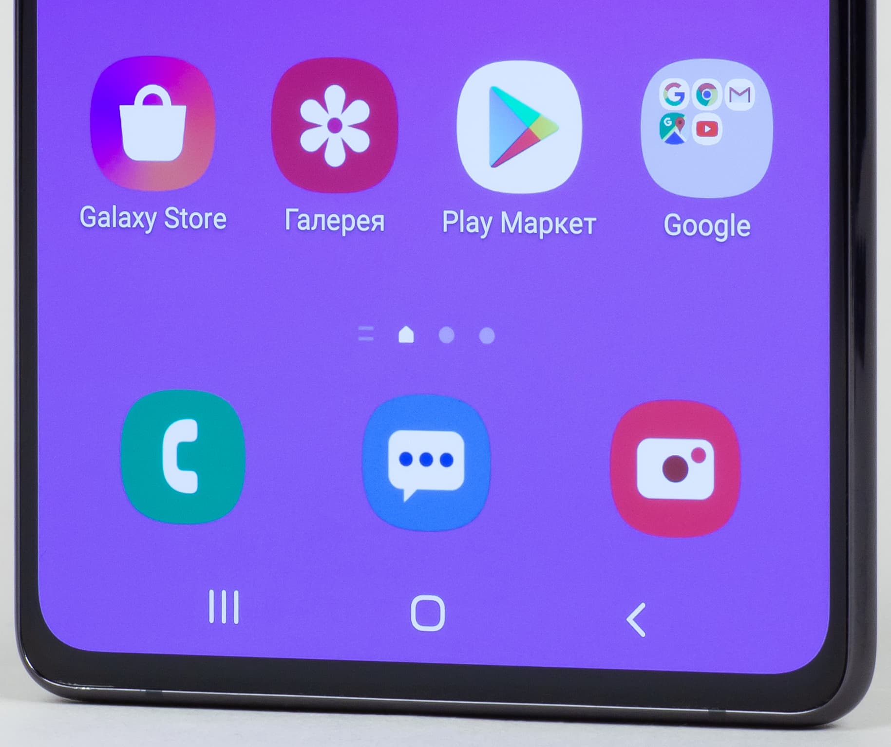 Экран у Samsung Galaxy S10 Lite заметно темнее (яркость по фотографиям 101 против 115 у Nexus 7) и не имеет выраженного оттенка. Двоение отраженных объектов в экране Samsung Galaxy S10 Lite очень слабое, это свидетельствует о том, что между слоями экрана нет воздушного промежутка. За счет меньшего числа границ (типа стекло/воздух) с сильно различающимися коэффициентами преломления экраны без воздушного промежутка лучше смотрятся в условиях интенсивной внешней засветки, но вот их ремонт в случае потрескавшегося внешнего стекла обходится гораздо дороже, так как менять приходится экран целиком. На внешней поверхности экрана Samsung Galaxy S10 Lite есть специальное олеофобное (жироотталкивающее) покрытие (очень эффективное, гораздо лучше, чем у Nexus 7), поэтому следы от пальцев удаляются существенно легче, а появляются с меньшей скоростью, чем в случае обычного стекла.