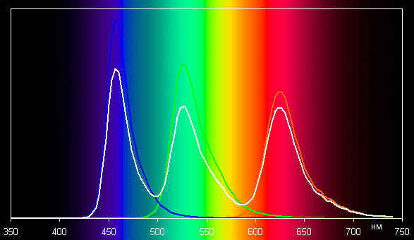 Без коррекции (профиль Насыщенные цвета) спектры компонент очень хорошо разделены: