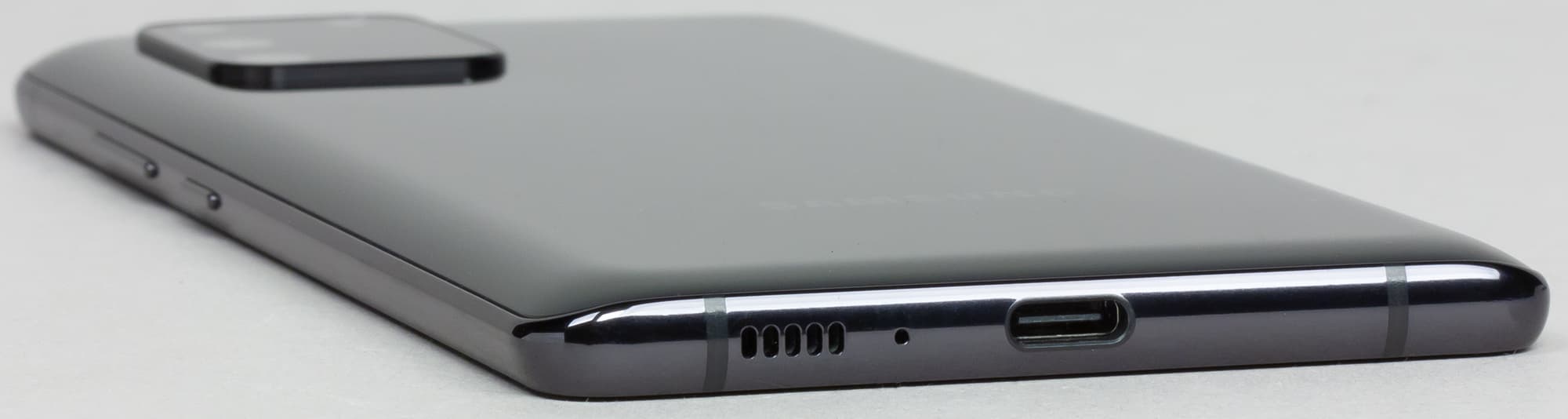 В нижнем торце установлены динамик, разговорный микрофон и разъем USB Type-C. А вот 3,5-миллиметрового разъема для наушников тут совершенно неожиданно нет, и в чем причина его отсутствия — зловещая тайна. Во всяком случае, и в Galaxy Note10 Lite, и даже в старшей модели Galaxy S10+ разъем для наушников имеется.