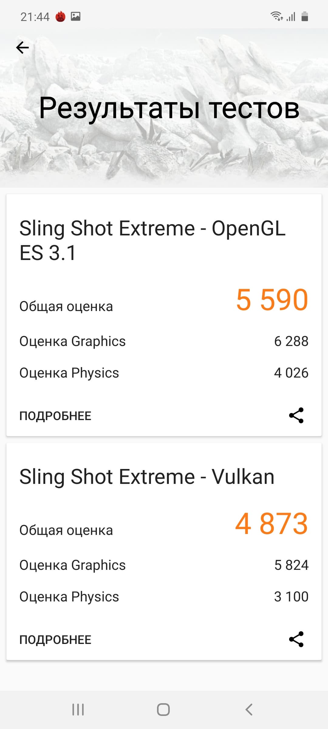 | 3DMark Sling Shot Ex Vulkan (больше — лучше) | 4556 | 3619 | 4847 | 2208 | 2763 |