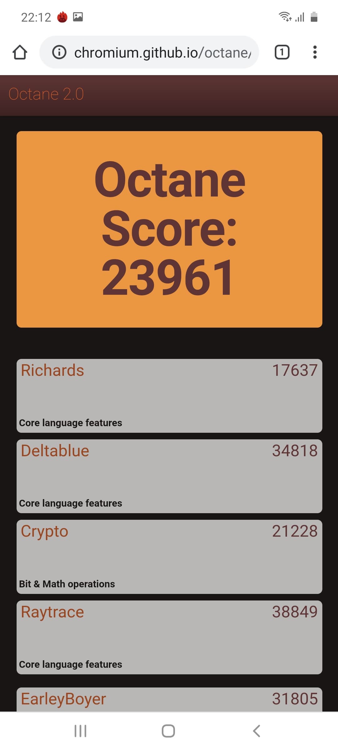 Что касается бенчмарков для оценки скорости движка javascript, то стоит всегда делать скидку на то, что в них результаты существенно зависят от браузера, в котором запускаются, так что сравнение может быть истинно корректным только на одинаковых ОС и браузерах, а такая возможность имеется при тестировании не всегда. В случае с ОС Android мы всегда стараемся использовать Google Chrome.