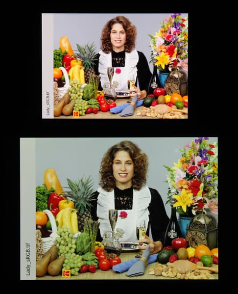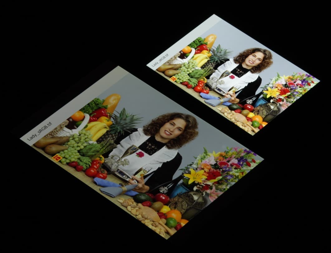 Отметим, что на экранах с широким цветовым охватом (без соответствующей коррекции) цвета́ обычных изображений, оптимизированных для устройств sRGB, выглядят неестественно насыщенными. Отсюда и рекомендация: в большинстве случаев смотреть кино, фотографии и все естественное лучше при выборе профиля Естественные цвета. И только если фотография или видеоматериал сделаны с охватом DCI, принятым в цифровом кинематографе, или Adobe RGB, то имеет смысл переключить профиль на Насыщенные цвета.