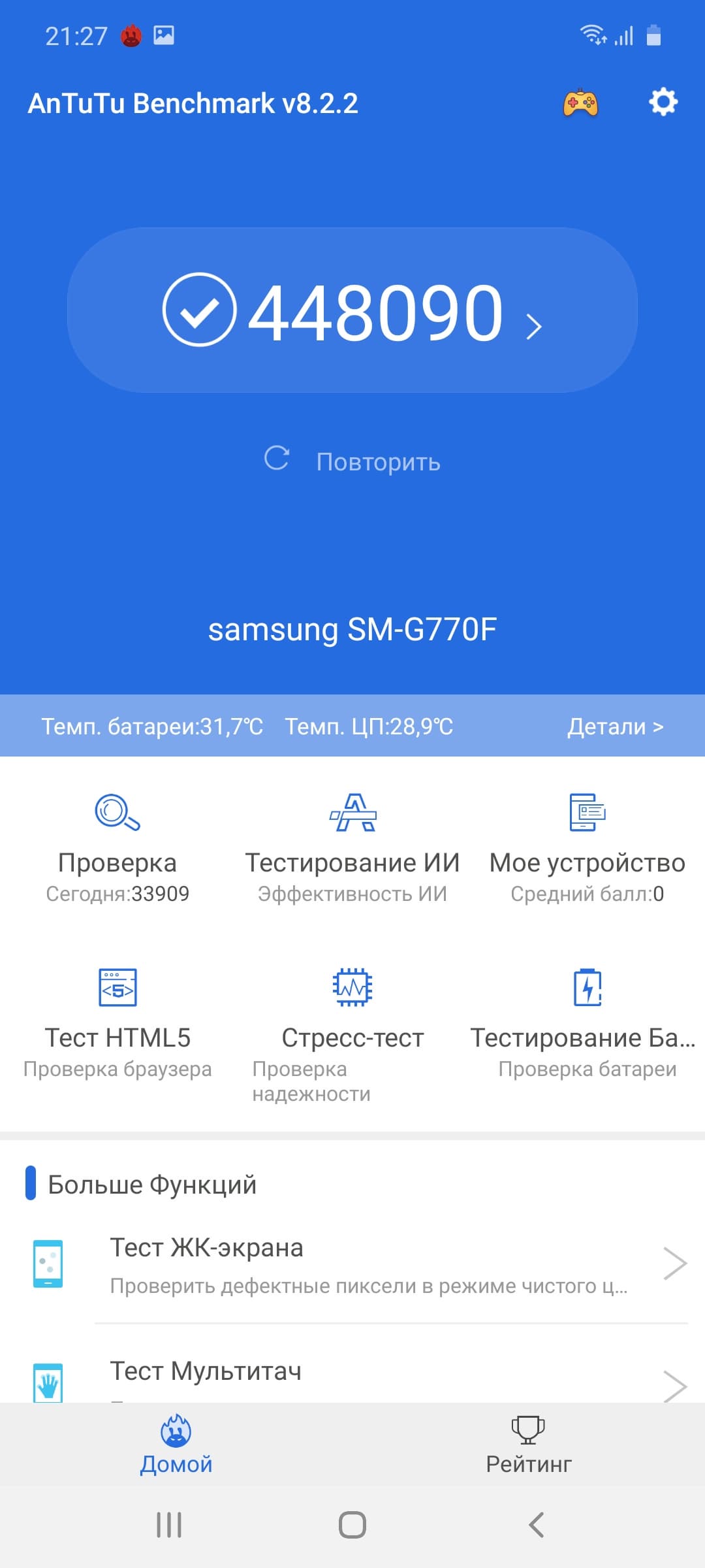 | AnTuTu (v7/8.x) (больше — лучше) | 448090 | 339871 | 470593 | 256769 | 321922 |