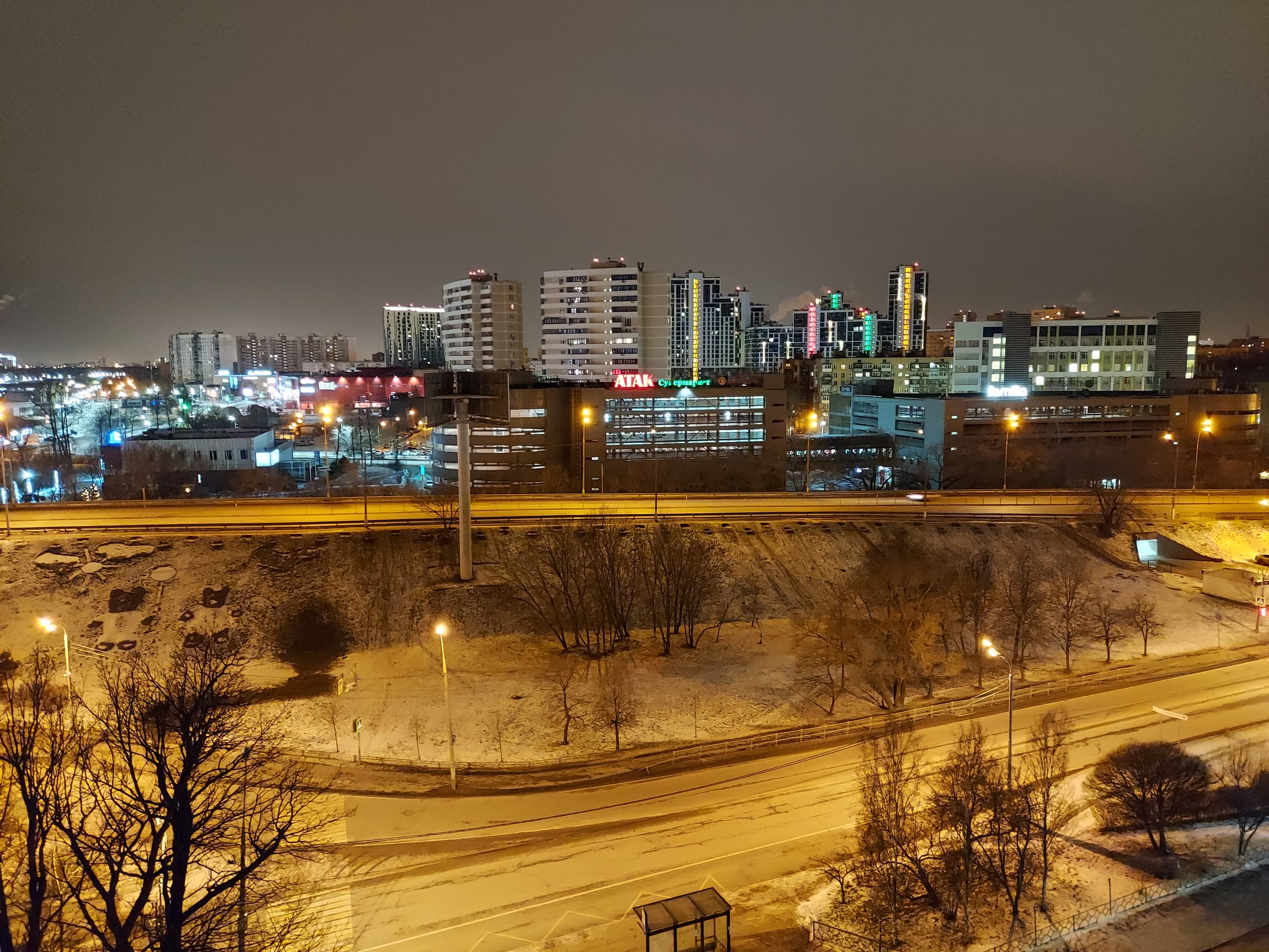 В 12-мегапиксельном режиме, впрочем, качество тоже весьма скромное — не уровня бюджетных телефонов, но уж точно и не уровня флагманов. Шумов на дневных снимках не видно, но достигается это за счет фирменной технологии обработки Samsung, предполагающей навязчивое подчеркивание контуров и выжигание мелких деталей. Элементы архитектуры после этого начинают выглядеть очень неплохо, особенно если не рассматривать их в полный размер, а вот пейзажи страдают. Кроме того, резкость у снимков заметно падает к краям (в нашем случае особенно сильно падает к правому краю — возможно, это дефект конкретного экземпляра). Ночью картинка лучше, разумеется, не становится, но можно использовать специальный ночной режим с еще более выраженной обработкой — решайте сами, как лучше. В целом для смартфона за 45 тысяч камеры здесь разочаровывающие.