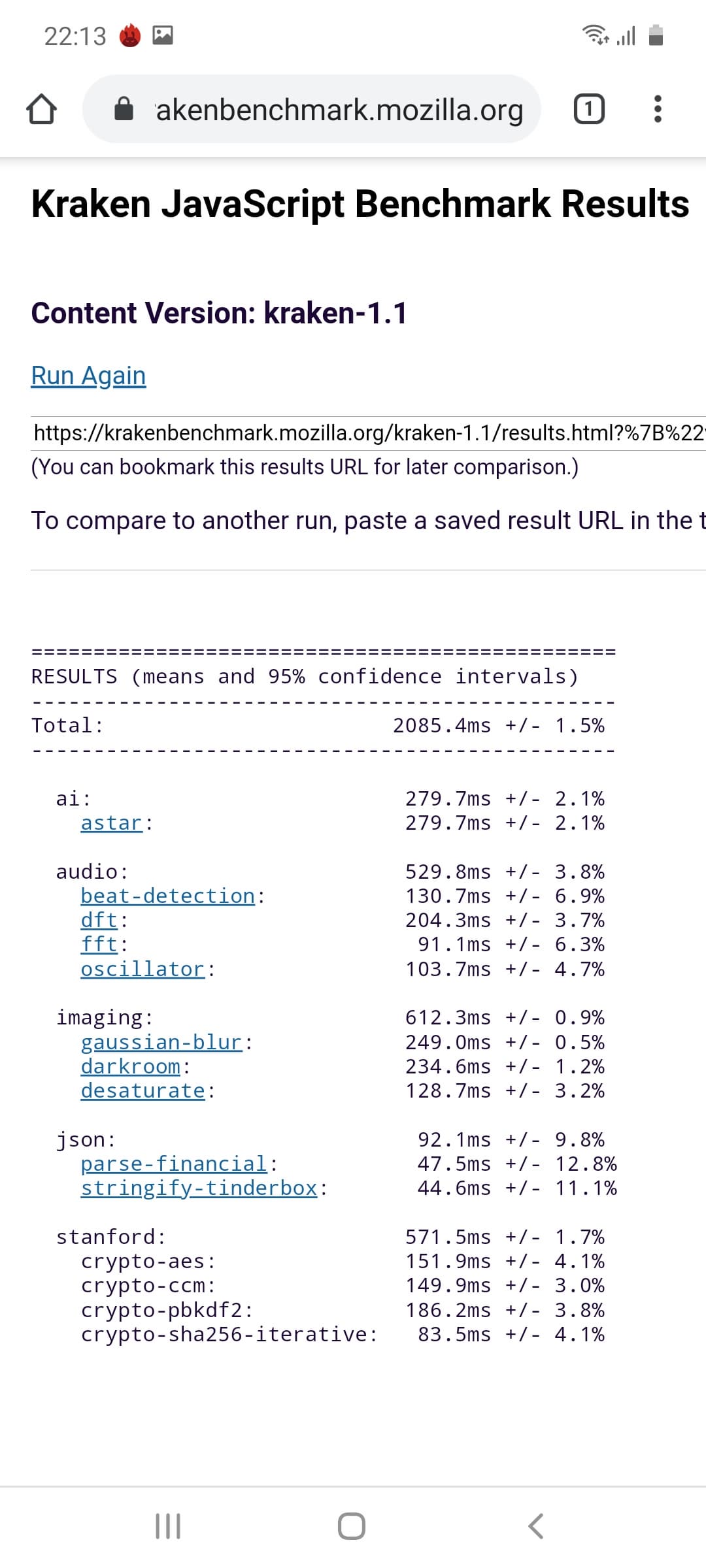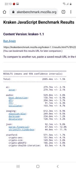| Mozilla Kraken (мс, меньше — лучше) | 2085 | 2580 | 2580 | 2708 | 2267 |