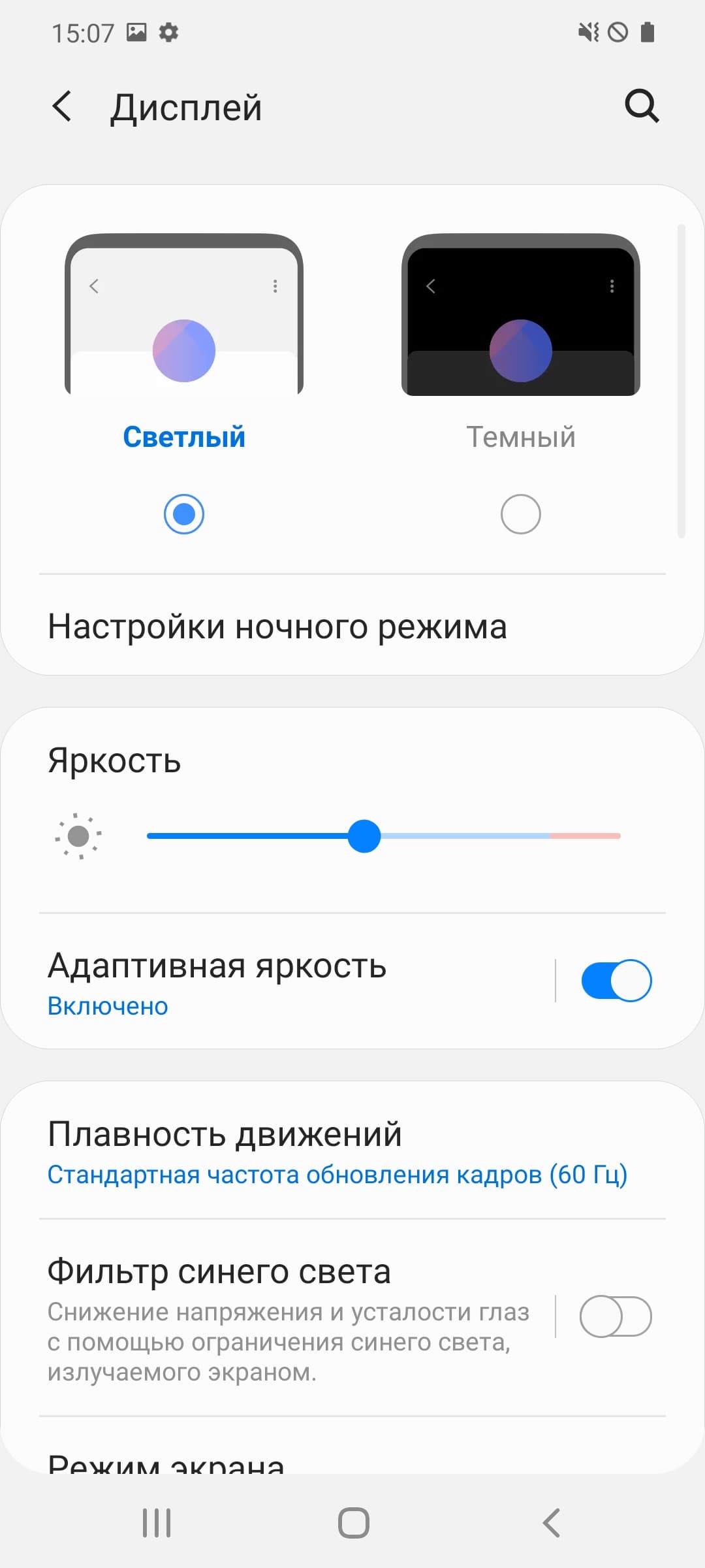 В качестве программной платформы используется ОС Android 10-й версии с оболочкой One UI 2.0. Интерфейс самой последней версии, и сейчас на него прилетают обновления по воздуху. Есть поддержка жестов, работа одной рукой, разделение экрана. Можно настраивать вручную весьма богатую функциональность Always On Display, менять частоту обновления экрана и его чувствительность к прикосновениям, запускать игры в игровом режиме, а также углубиться в куда более тонкие настройки, вроде уменьшения интенсивности анимаций.