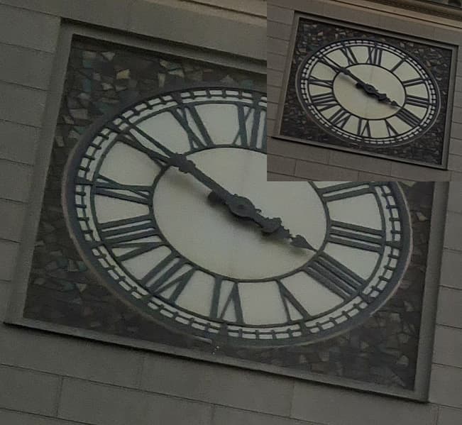 Мы видим, что фокусное расстояние условно основного объектива и условно телеобъектива практически одинаковое. Но позвольте, как же он служил в очистке откуда же берется зум? На самом деле, приближение удаленных объектов при съемке на второй модуль осуществляется почти целиком за счет более высокого разрешения, то есть «зум-фотография» представляет собой центральный фрагмент 64-мегапиксельного снимка. Если сравнить размеры объекта на снимках, сделанных с одной точки, видно, что на 64-мегапиксельном снимке он крупнее примерно в 2,4 раза.
