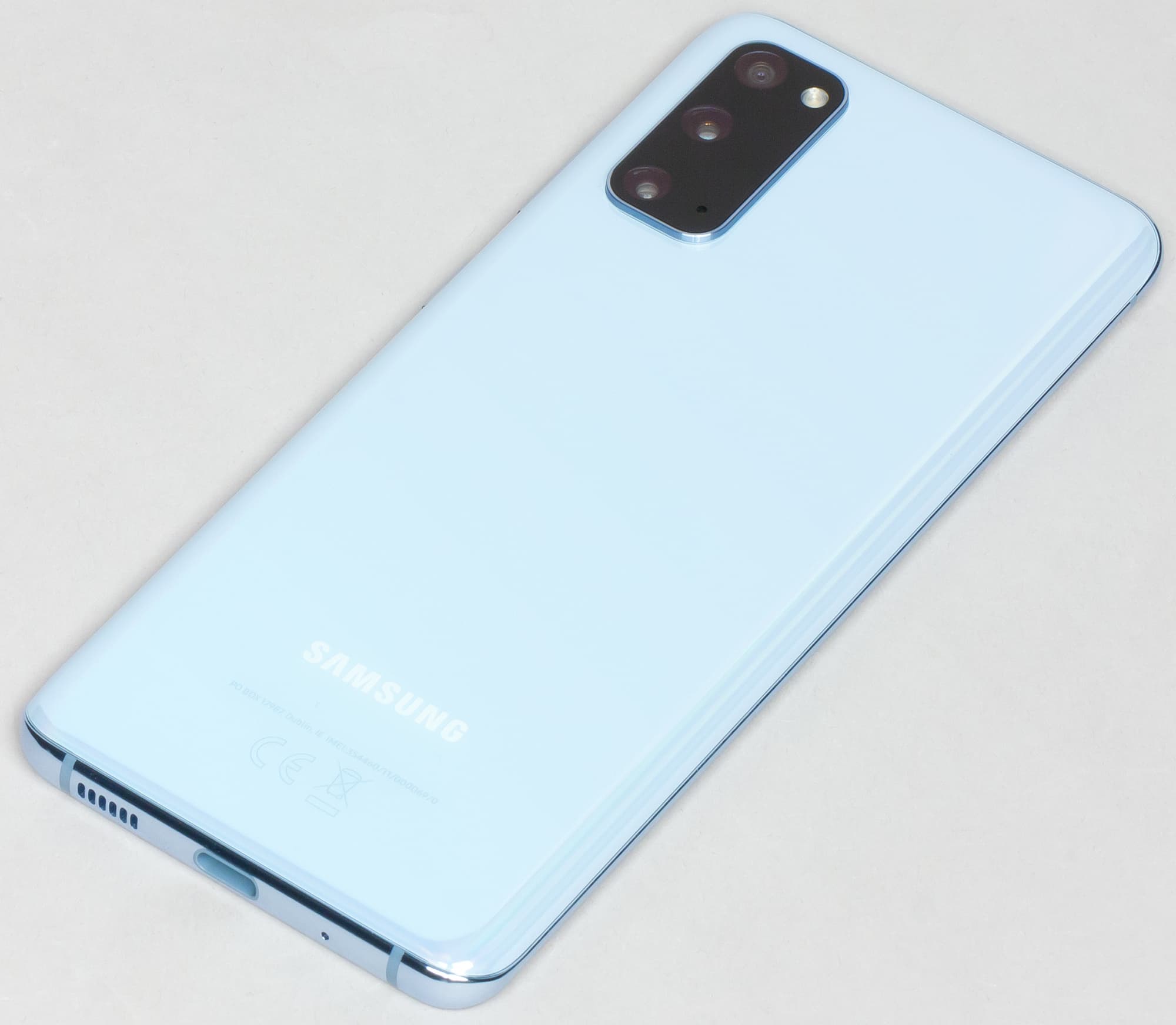 Задняя стенка выполнена из стекла, боковая рама — металлическая. В руках смартфон не скользит, хотя отпечатки на его стеклах, конечно, видны. В этом смысле практичнее светлый вариант, там отпечатки практически не заметны. В любом случае, Galaxy S20 — один из самых небольших и привлекательных смартфонов максимально топового уровня, и любителям небольших флагманов стоит обратить внимание именно на эту модель.