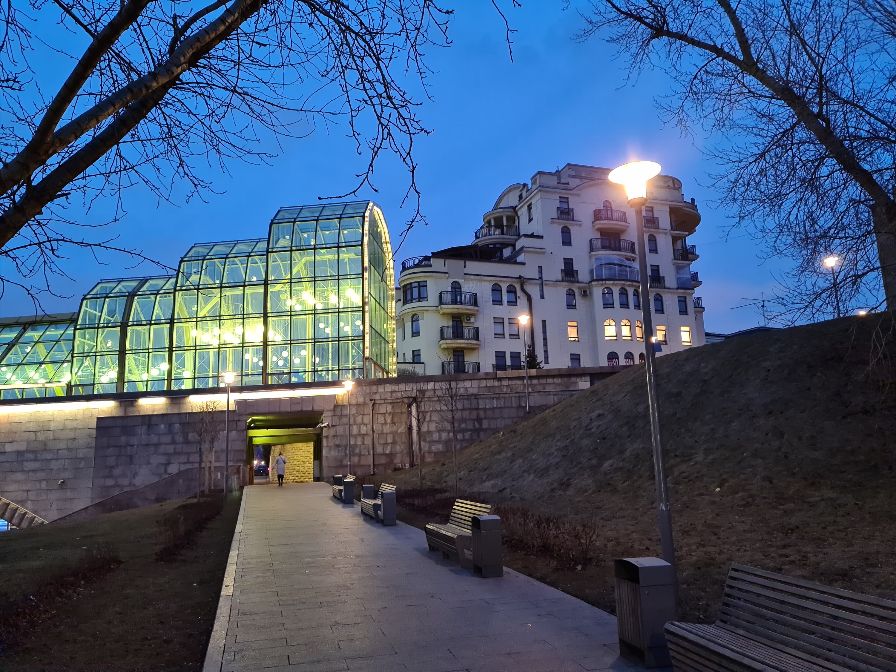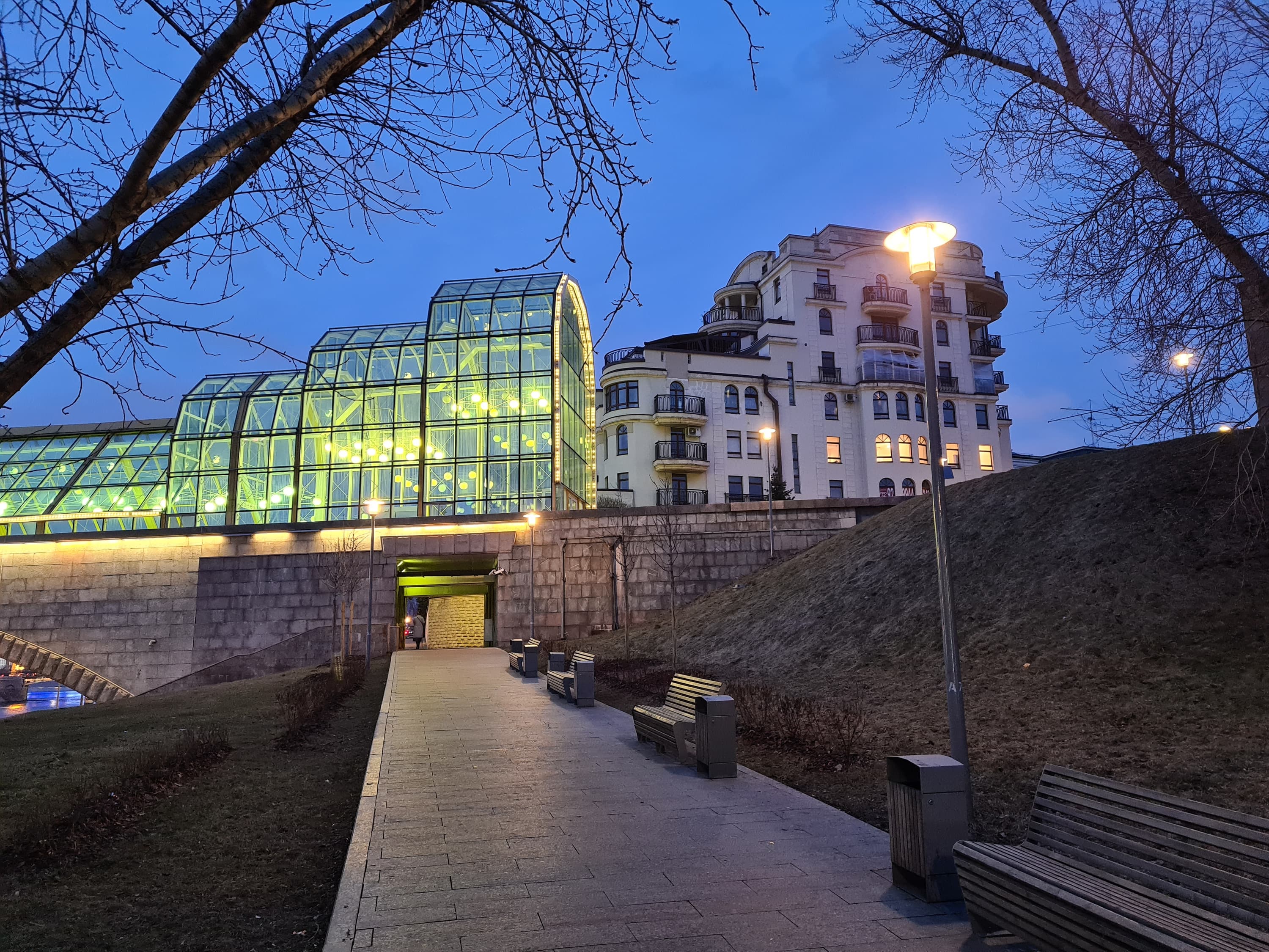 При съемке в 64-мегапиксельном режиме картинка при разглядывании в полный размер заметно хуже, чем у 12-мегапиксельных снимков на основной модуль. Здесь и от шумов никуда не деться даже в солнечный день, и резкость местами плывет, однако на краях кадра никакого ухудшения нет, а уж по детализации, с учетом такой разницы в разрешении, 64-мегапиксельные снимки гораздо предпочтительнее. Просто для них разумно выполнять небольшую обработку в фоторедакторе с попутным уменьшением снимка перед демонстрацией фотографий. В потемках качество снимков на этот модуль деградирует очень серьезно, а навязчивая обработка Samsung сильно ухудшает картинку, так что ночью в 64 Мп снимать, на наш взгляд, бесполезно.