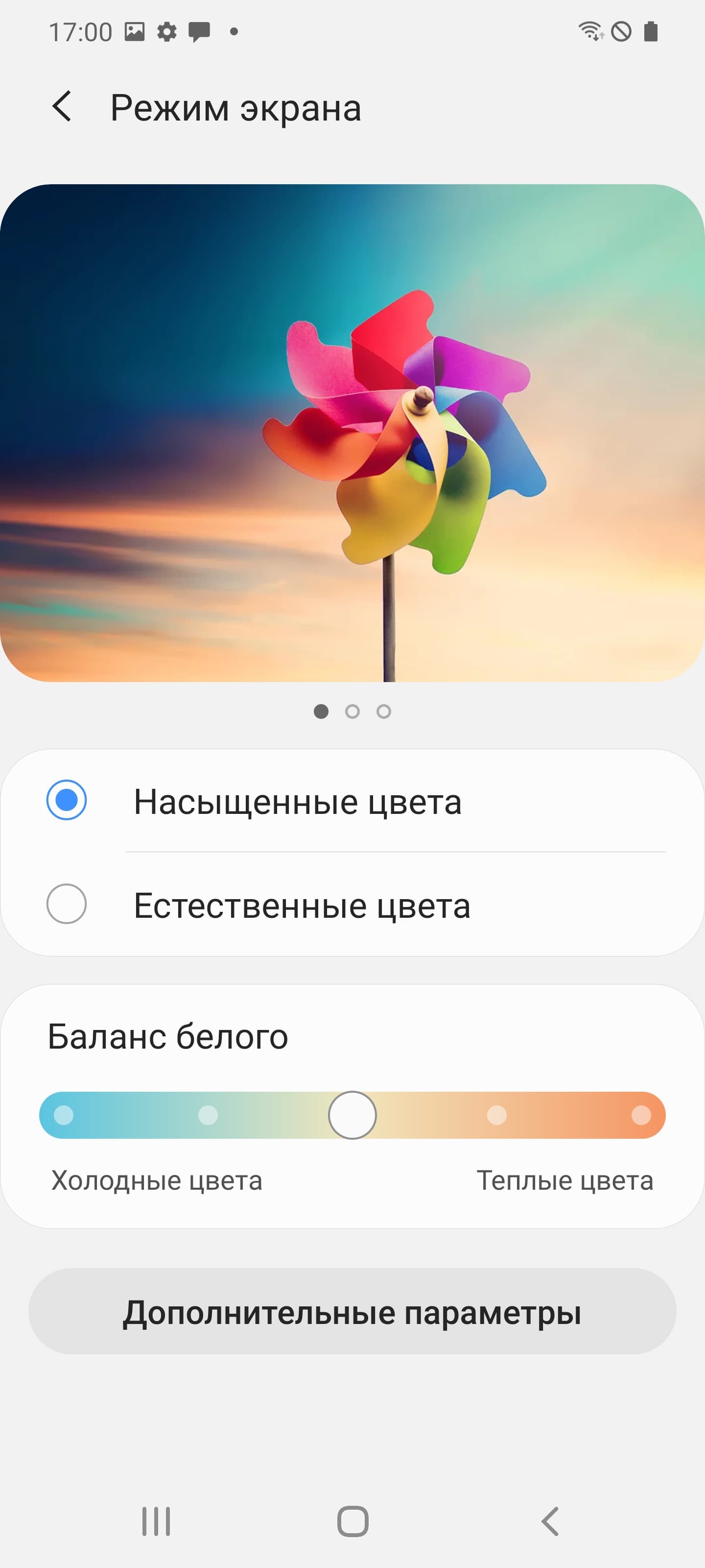 Фотография выше получена после выбора профиля Естественные цвета в настройках экрана, всего их два: