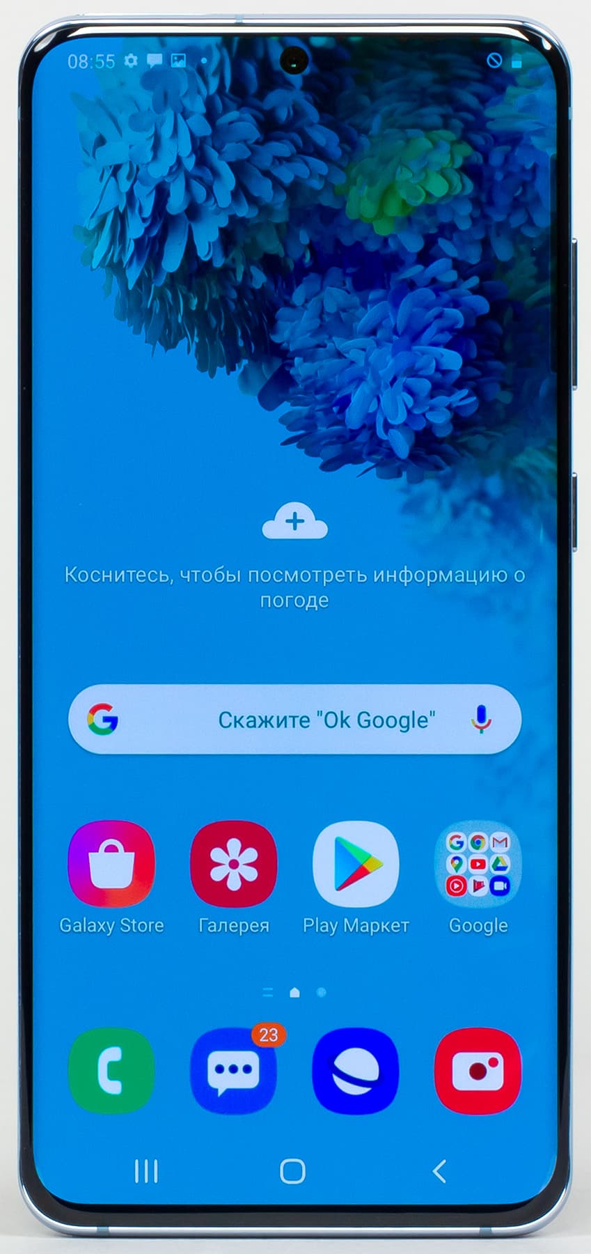 Samsung Galaxy S20 можно встретить в различных цветах, есть серый, розовый, голубой, красный, белый, но у нас официально представлены не все из них. Корпус новинки имеет защиту от воды и пыли по стандарту IP68 (погружение на 30 минут на глубину до 1,5 м).