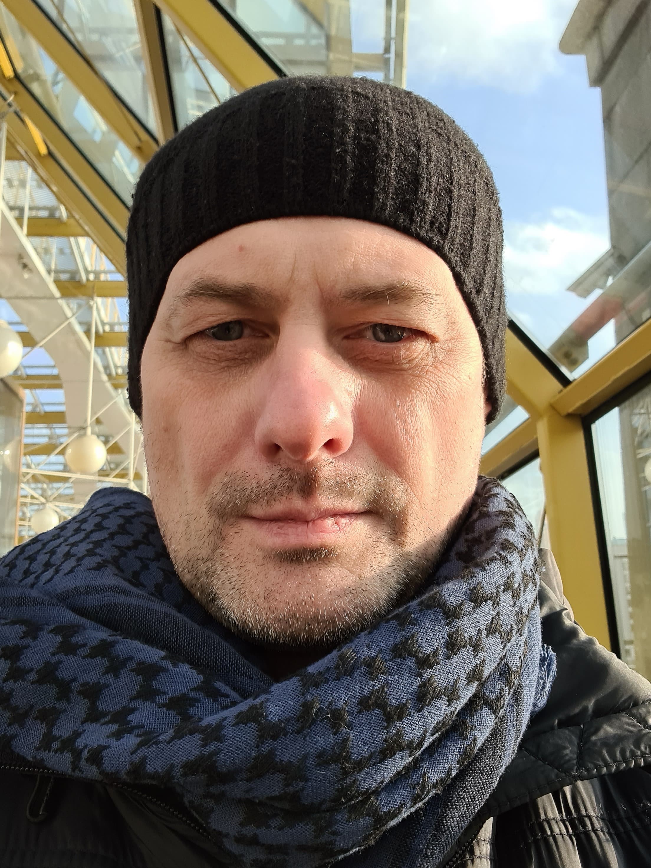 Селфи-камера не слишком впечатляет характеристиками (10 Мп, 1/3,2″, 1,22 мкм, f/2,2, Dual Pixel PDAF), мы уже видели и 30-мегапиксельные модули, зато качество изображения просто отличное. Поддерживается режим двойного видеозвонка и возможность снимать видео в 2160p при 60 fps. В режиме крупного плана (он реализуется простым кадрированием) разрешение уменьшается до 6,5 Мп. Камера неплохо размывает фон, верно передает краски, достойно справляется даже в условиях слабого искусственного освещения. Есть режим ретуши и возможность использовать селфимодзи.