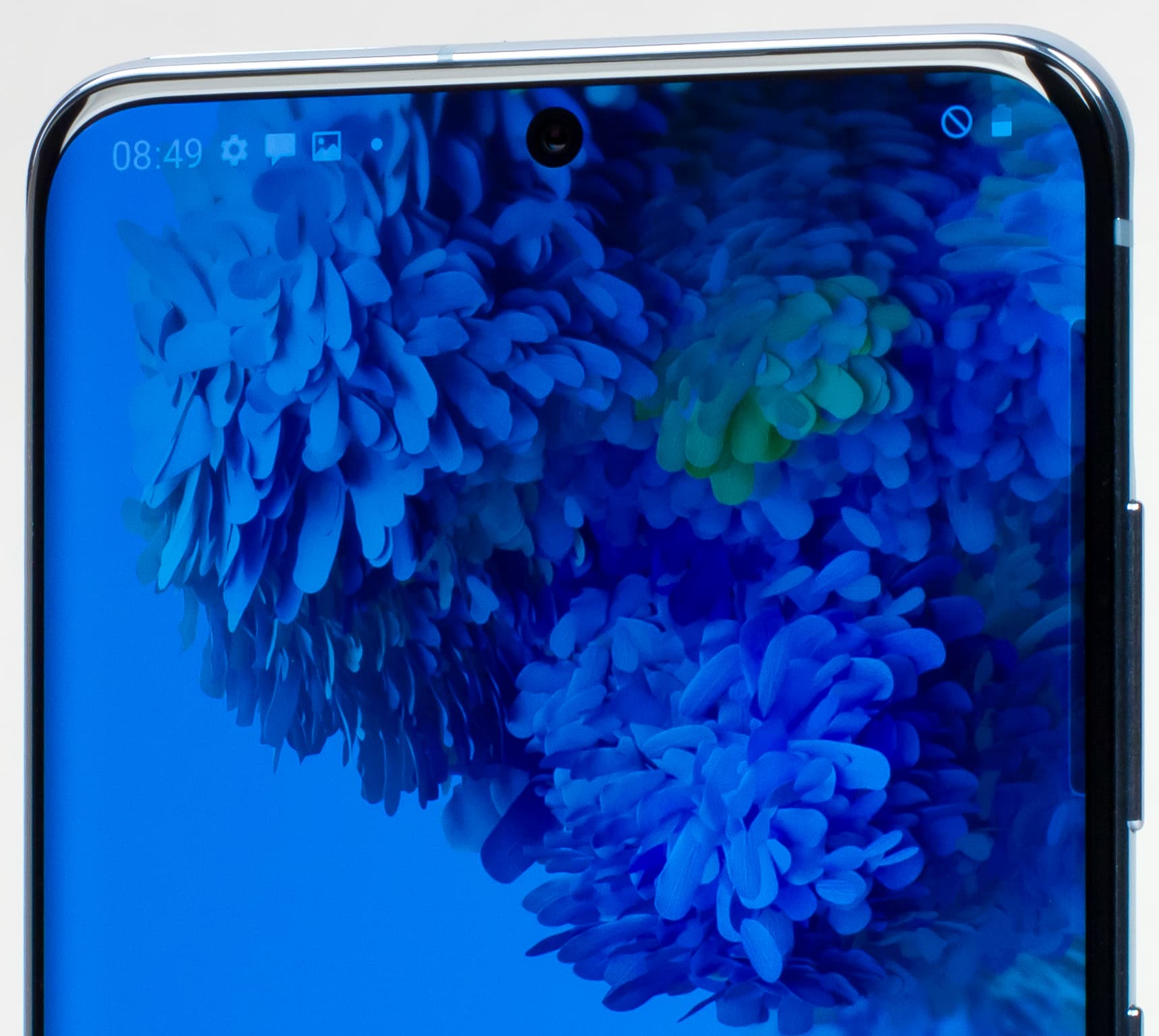 Цветопередача хорошая, цвета в меру насыщенные, цветовой баланс у экранов немного различается. Напомним, что фотография не может служить надежным источником сведений о качестве цветопередачи и приводится только для условной наглядной иллюстрации. В частности, выраженный красноватый оттенок белого и серого полей, присутствующий на фотографиях экрана Samsung Galaxy S20, при перпендикулярном взгляде визуально отсутствует, что подтверждается аппаратными тестами с помощью спектрофотометра. Причина в том, что спектральная чувствительность матрицы фотоаппарата неточно совпадает с этой характеристикой человеческого зрения. Заметим, что в данном случае картинка занимает в высоту (при ландшафтной ориентации экрана) всю доступную для вывода изображения область и заходит на загнутые края экрана, что приводит к легкому затемнению и искажению цвета. Также на свету эти области почти всегда бликуют, что еще больше мешает при просмотре изображений, выведенных на весь экран. И даже картинка фильмов с соотношением сторон 16:9 заходит на загибы, что мешает при просмотре кино. Впрочем, в данном смартфоне загнутая область имеет небольшую ширину, и отрицательные эффекты от ее присутствия небольшие.